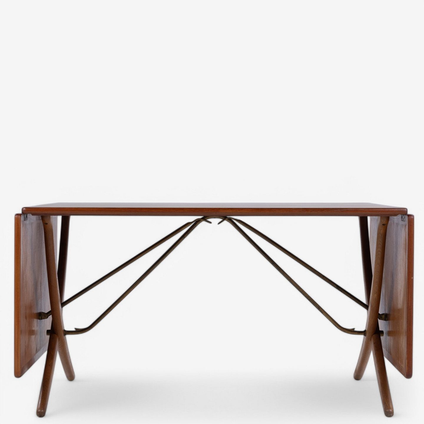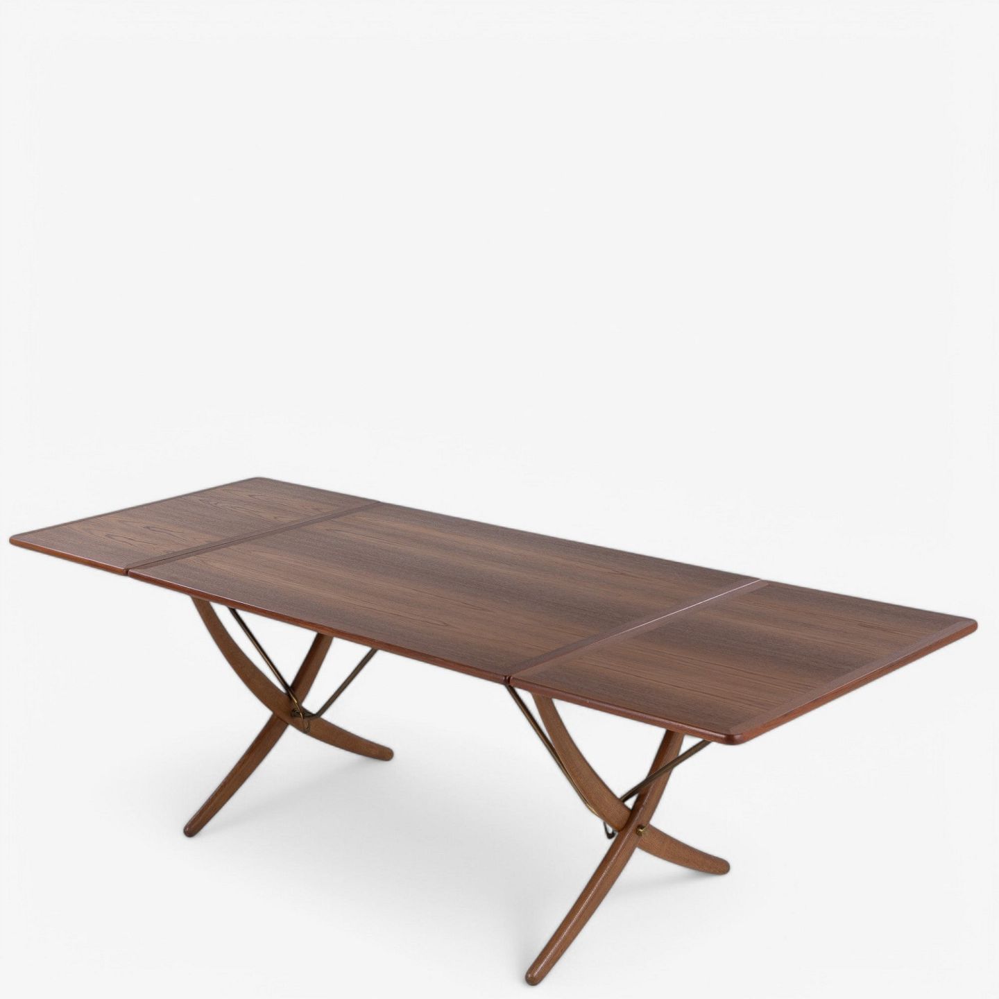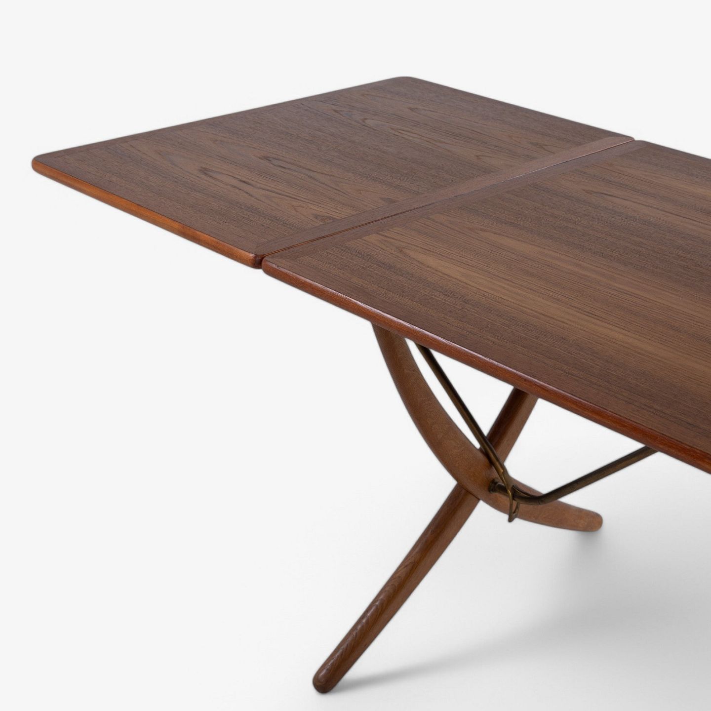 AT 304 - 'Sabre leg table' with frame in oak and top in teak. Stamped from manufacturer.