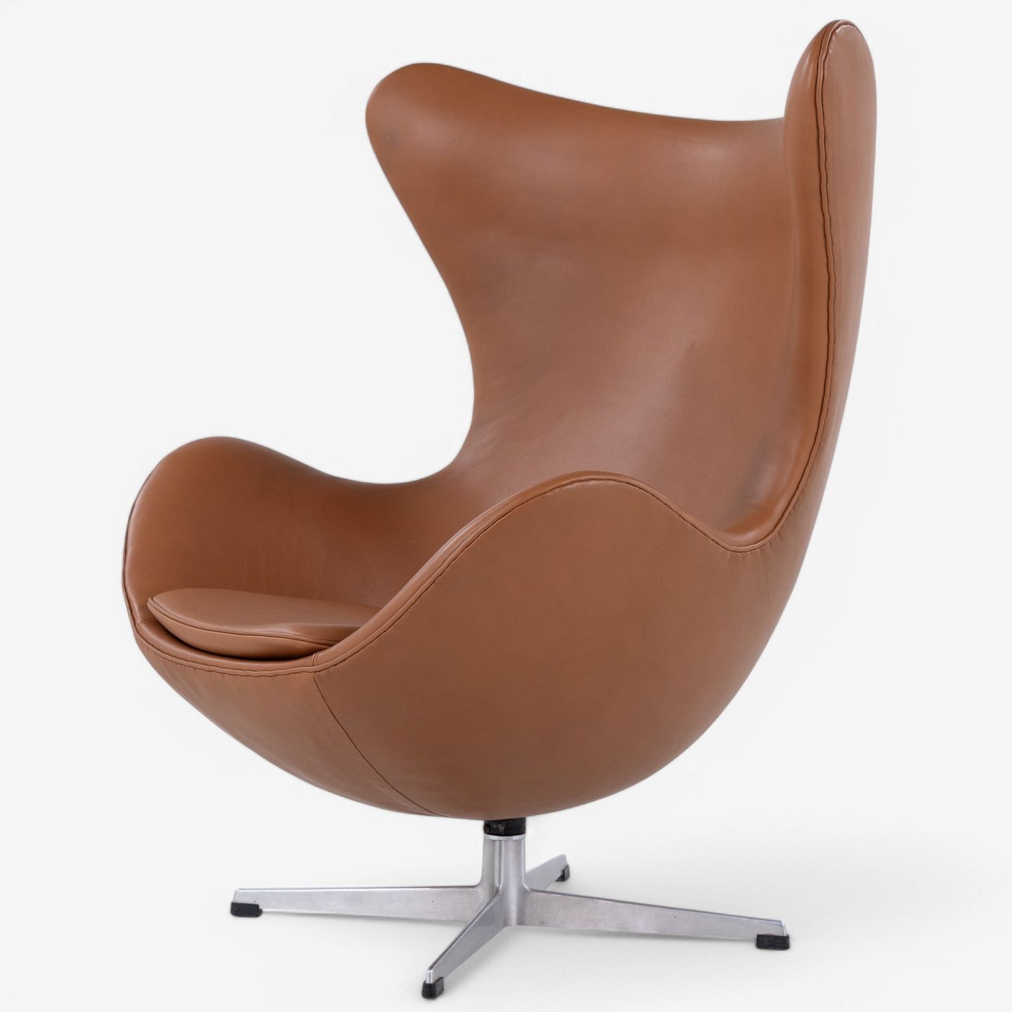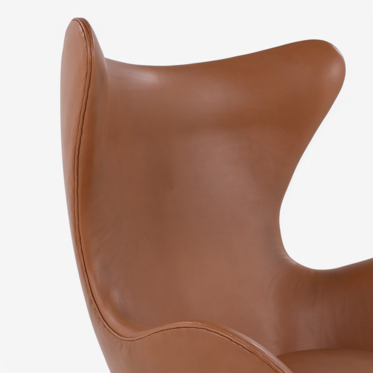 AJ 3316 - Nybetrukket 'Ægget'-lænestol i Elegance-anilinlæder (farve: Walnut) på gammel fod.