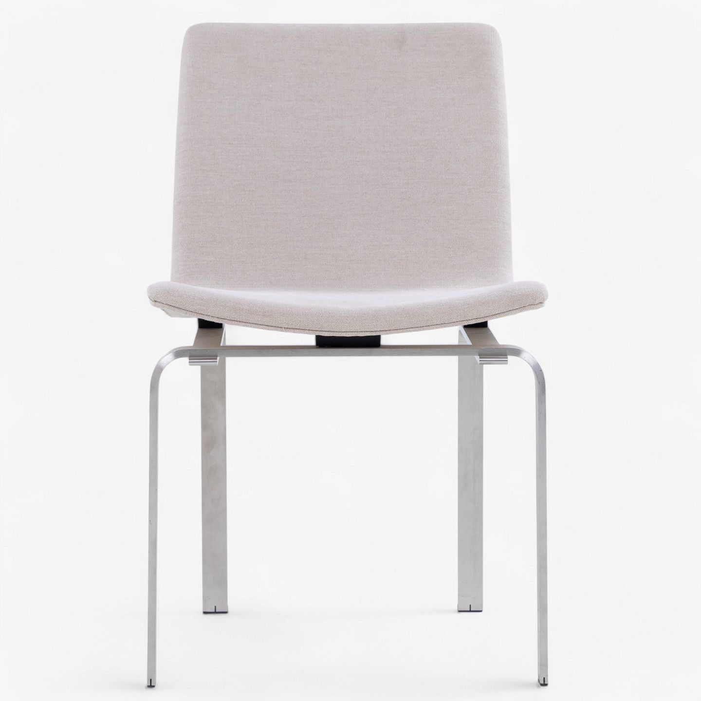 JH 3 - Sæt á 6 spisestuestole med stel i stål og sæde i natur kanvas.
