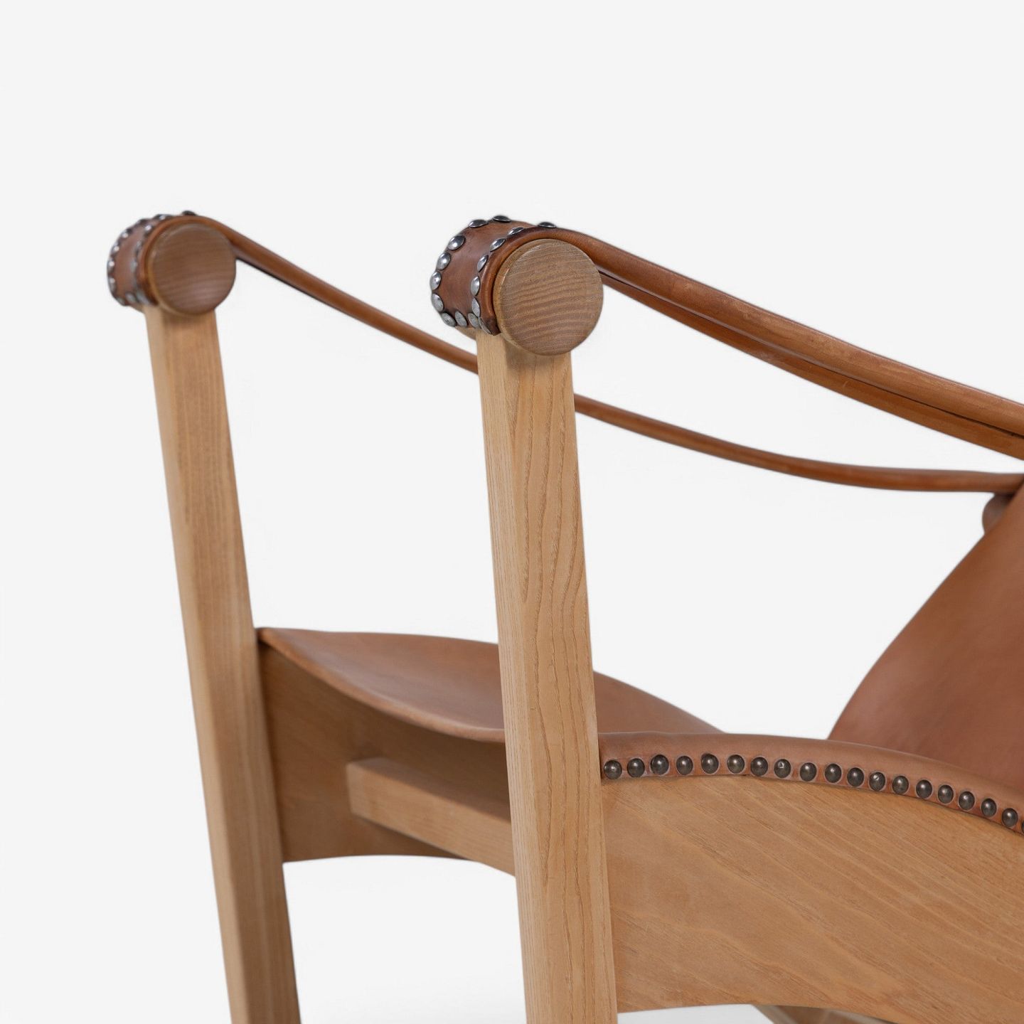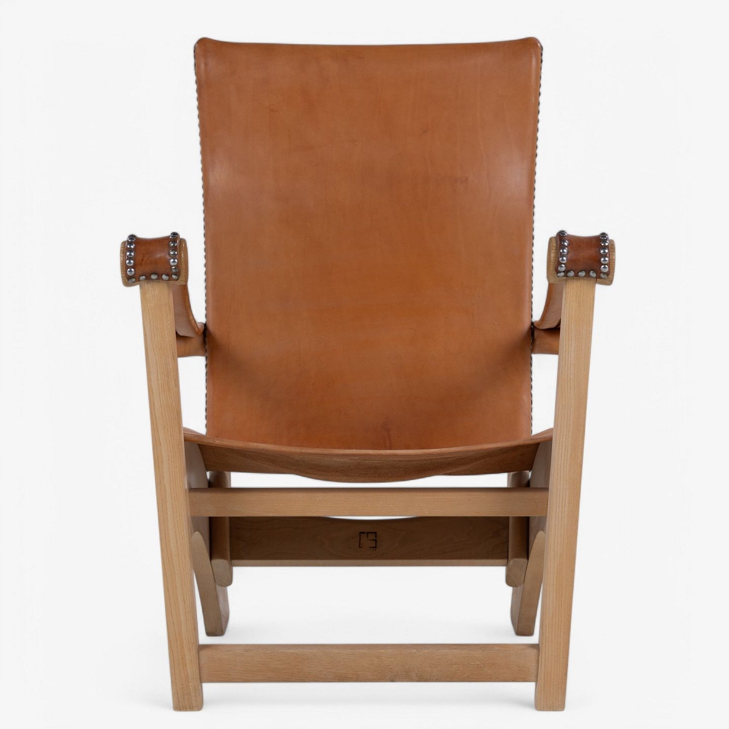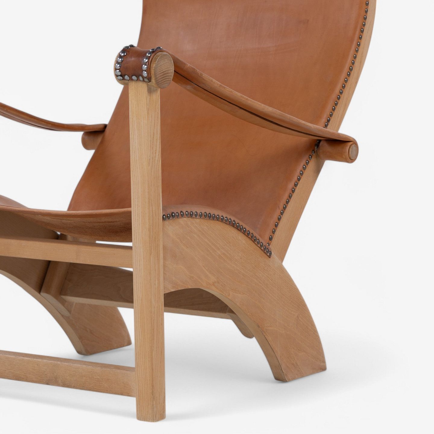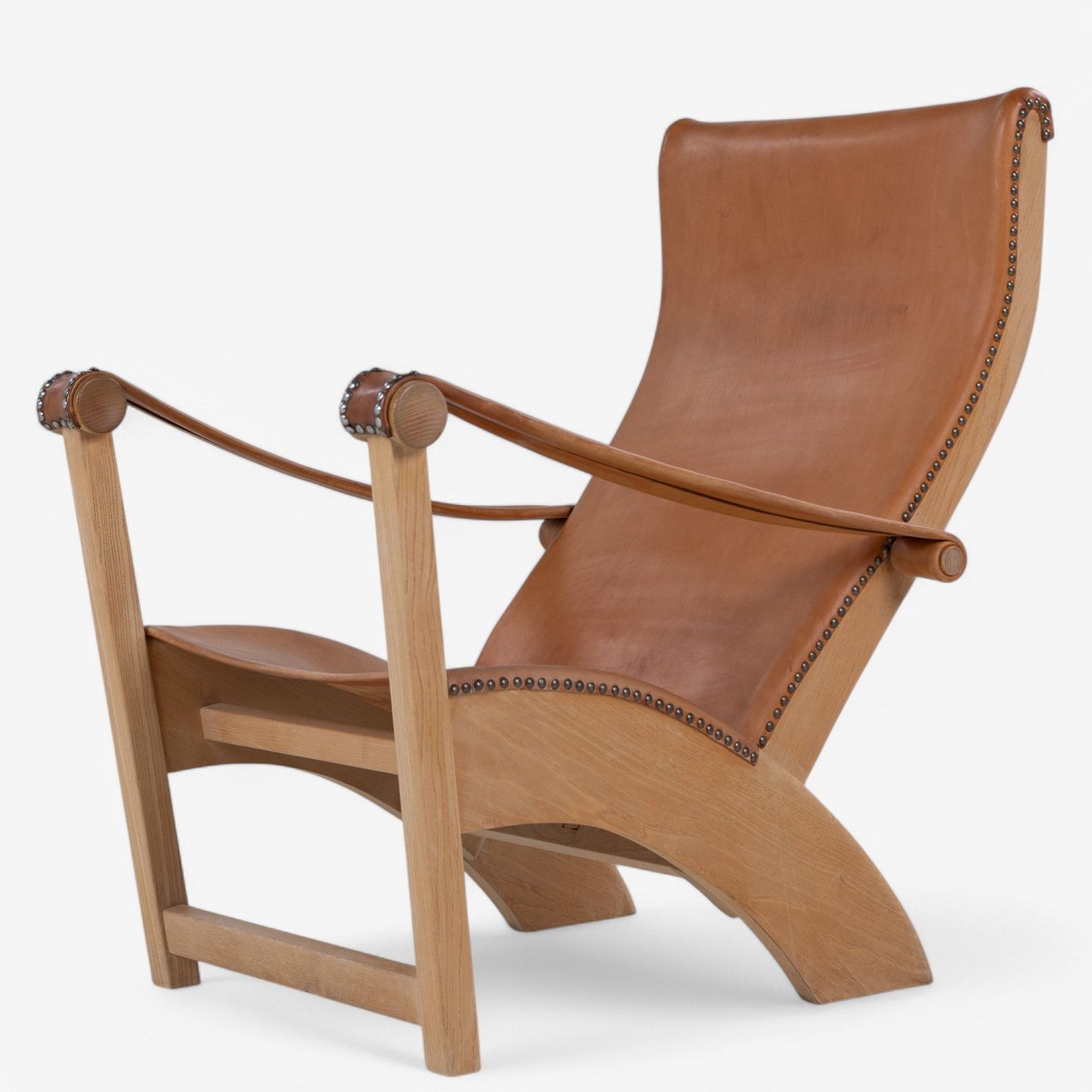 'Københavnerstol'-lænestol i eg og patineret naturlæder.