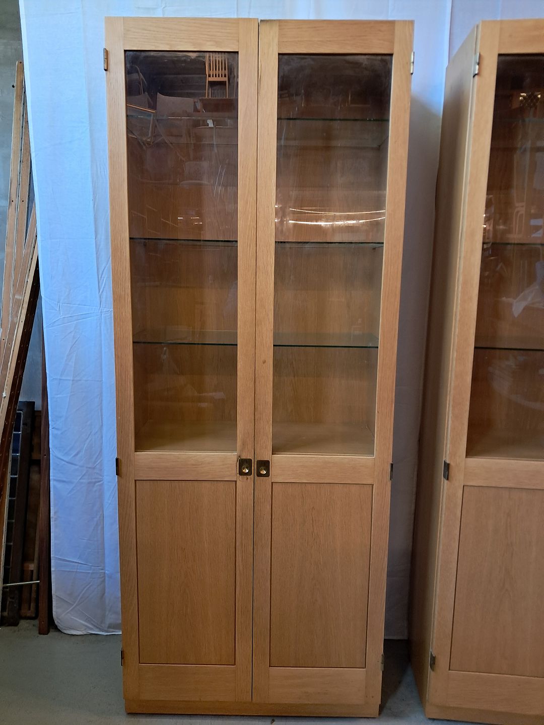 2 Vitrineskabe i fineret egetræ, fra 1970erne.