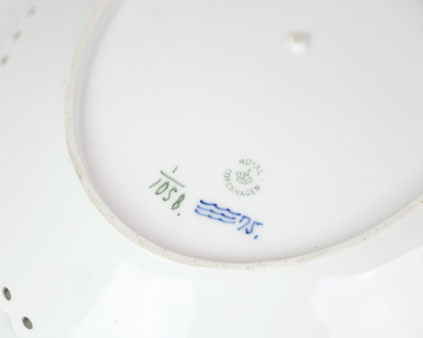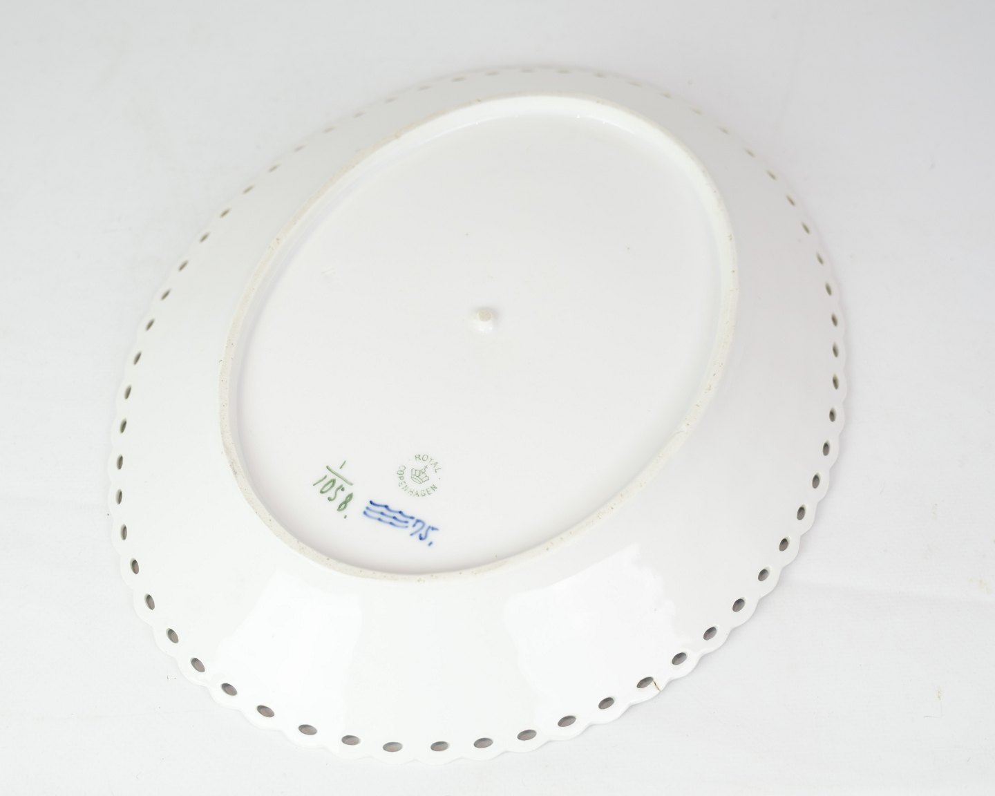 Large oblong serving dish of hand-painted Royal Copenhagen in the patterned blue fluting full lace no. 1058. In very good condition without any damage with a beautiful clear hand-painted blue color. 2 pcs. in stock