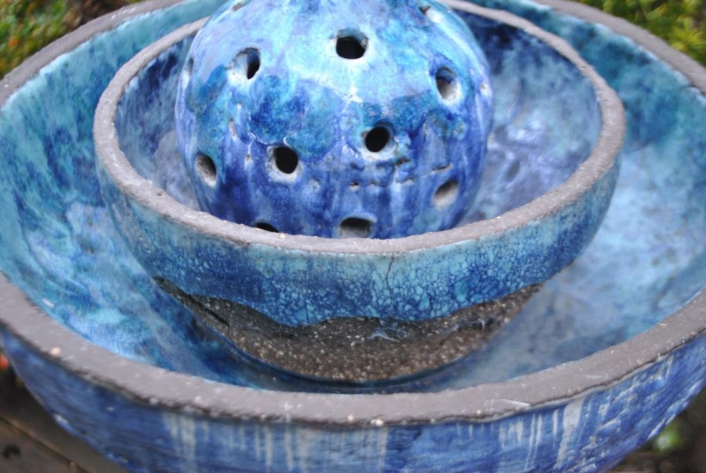 Schmidt, Louis Rosen (1943 - 1993) Danmark: Vandfontæne. Glaseret blålig keramik.