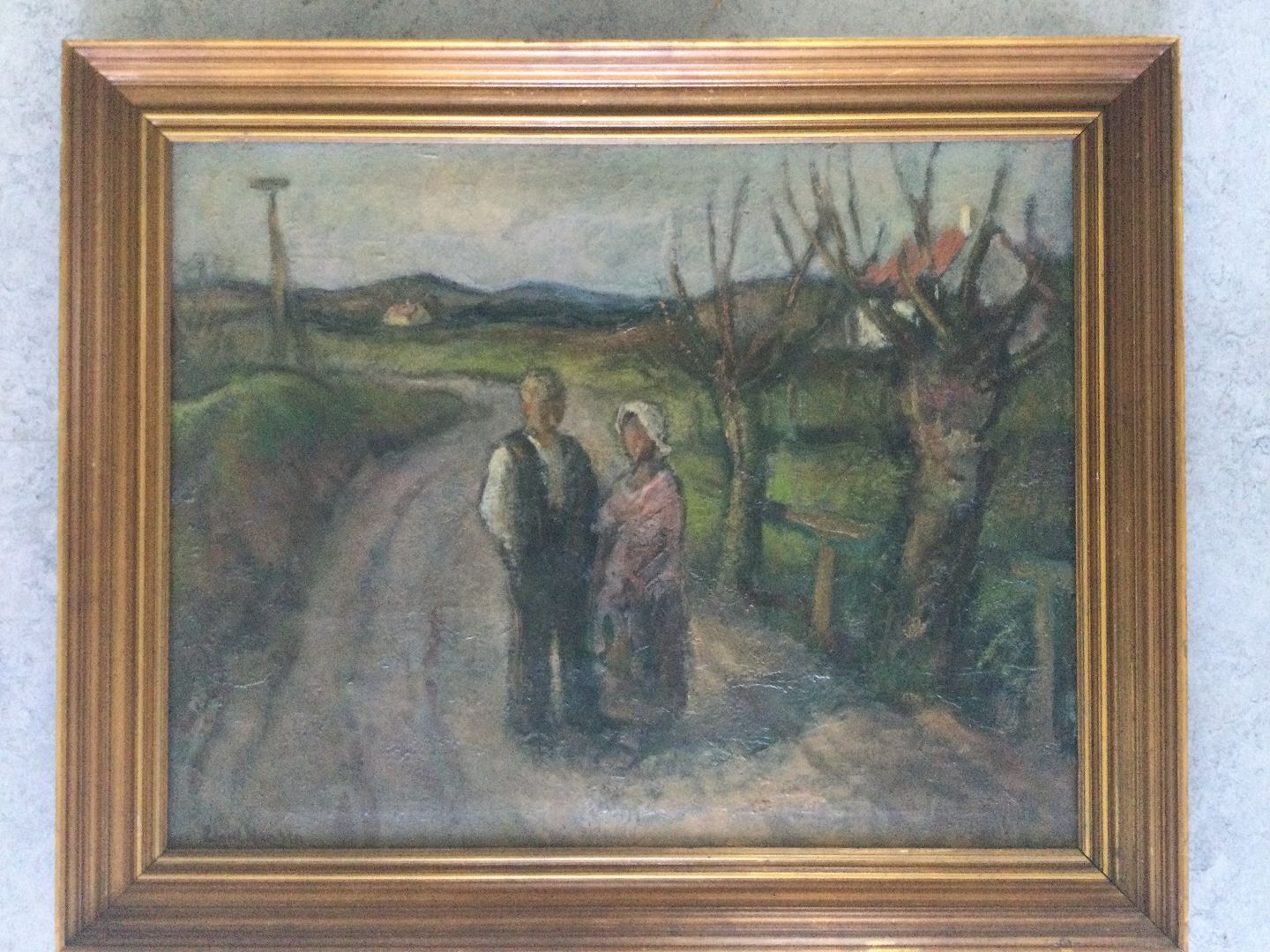 Maleri af Emiel Hansen - kvinde og mand på markvej.