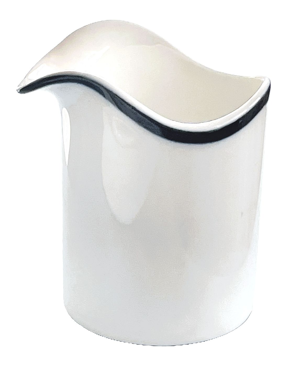 Royal Copenhagen, Indigo, Flødekande, hvidt porcelæn med indigoblå kant. Designet af Anne Marie Trolle i midten af 1970'erne, udgår i midten af 1980'erne. Nr. 14908. Højde 8,8 cm. Diameter 6,5 cm. II. sortering, hvilket betyder at der kan være små produktionsfejl. Pris: 250 kr. stk. Lager: 1