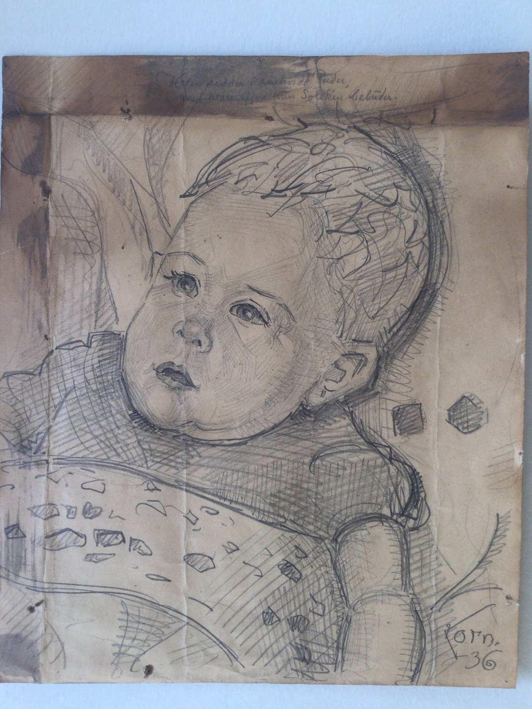 Papiret har været ombukket ved tidligere indramning, derfor farveforskel.