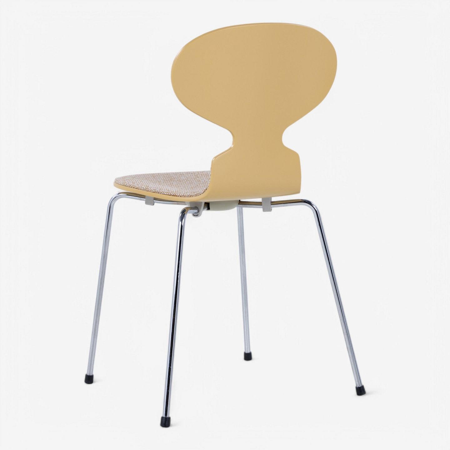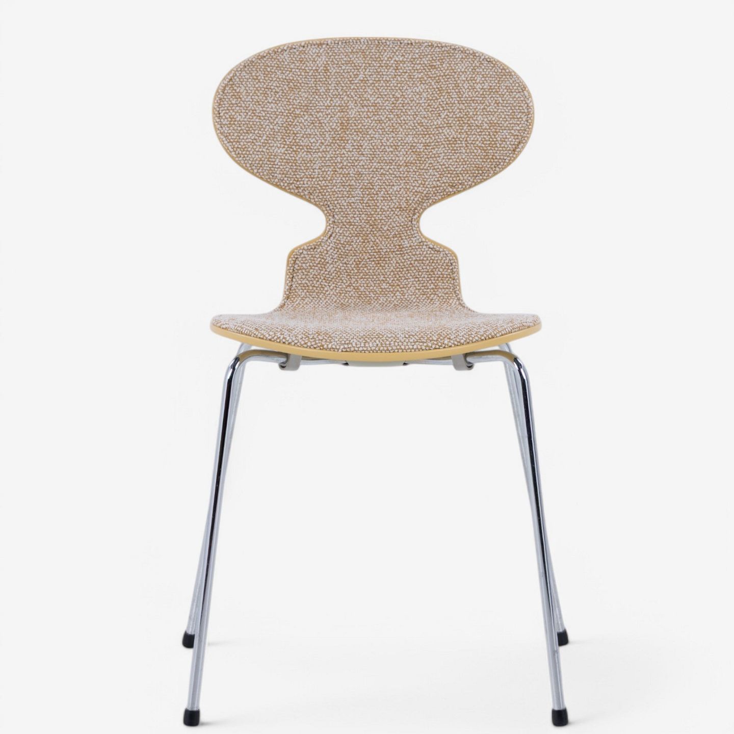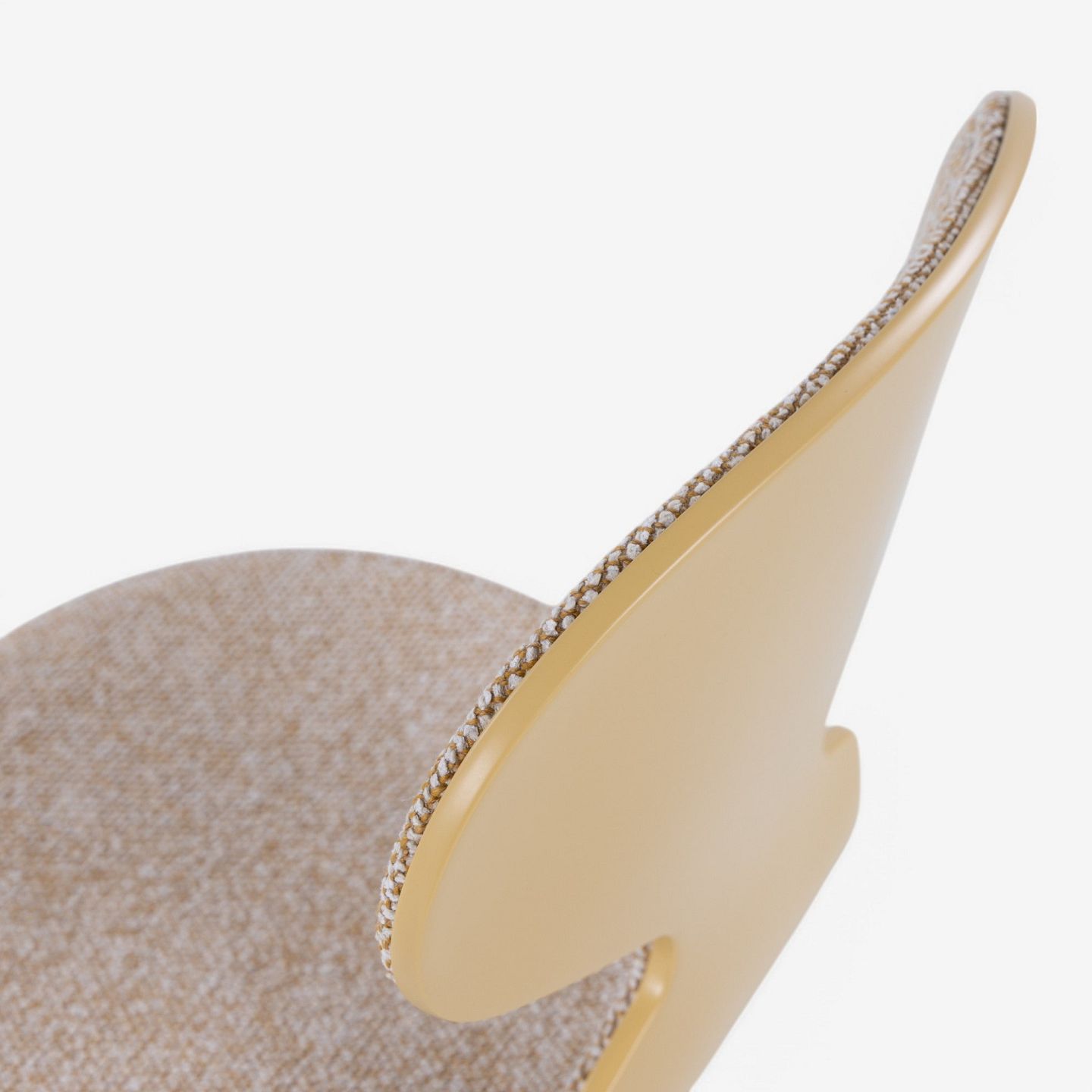 AJ 3100 - 'Myrestol' lakeret i 'RAL 1002' og forsidepolstret i 'Moss 021'-stof.
