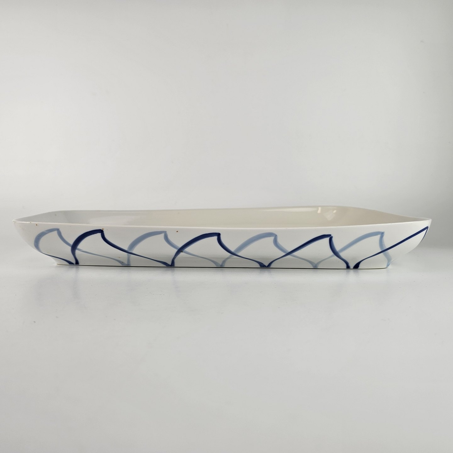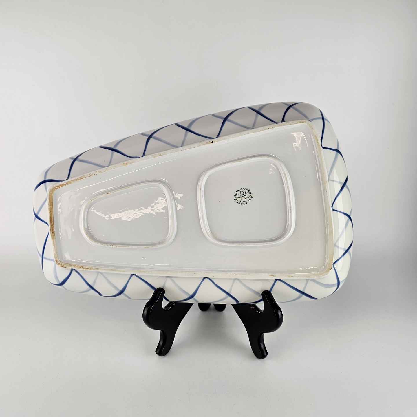 Stort asymmetrisk fad fra stellet Blå Flamme, også kendt som Harlekin. Dan-ild 40.