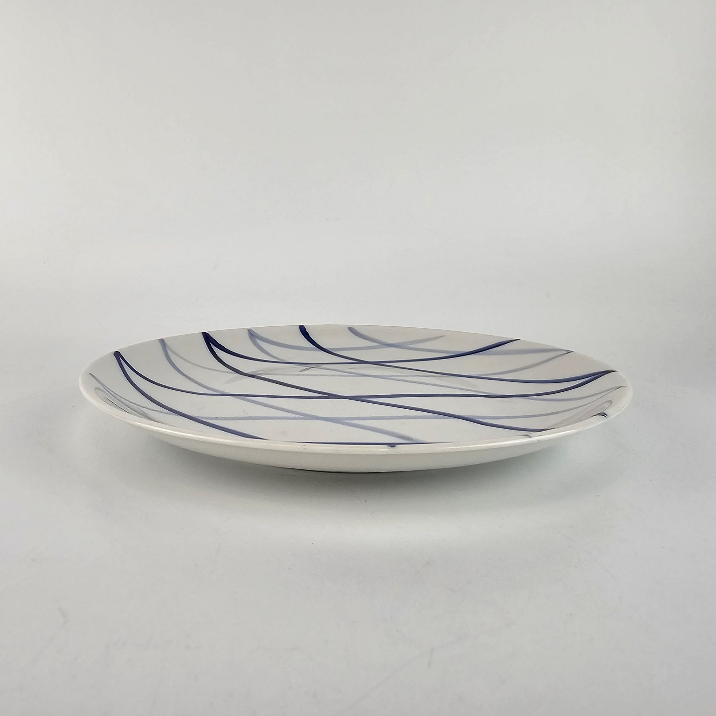 Blå Flamme er hvidt ildfast porcelæn, dekoreret med blå striber, der ligner flammer.