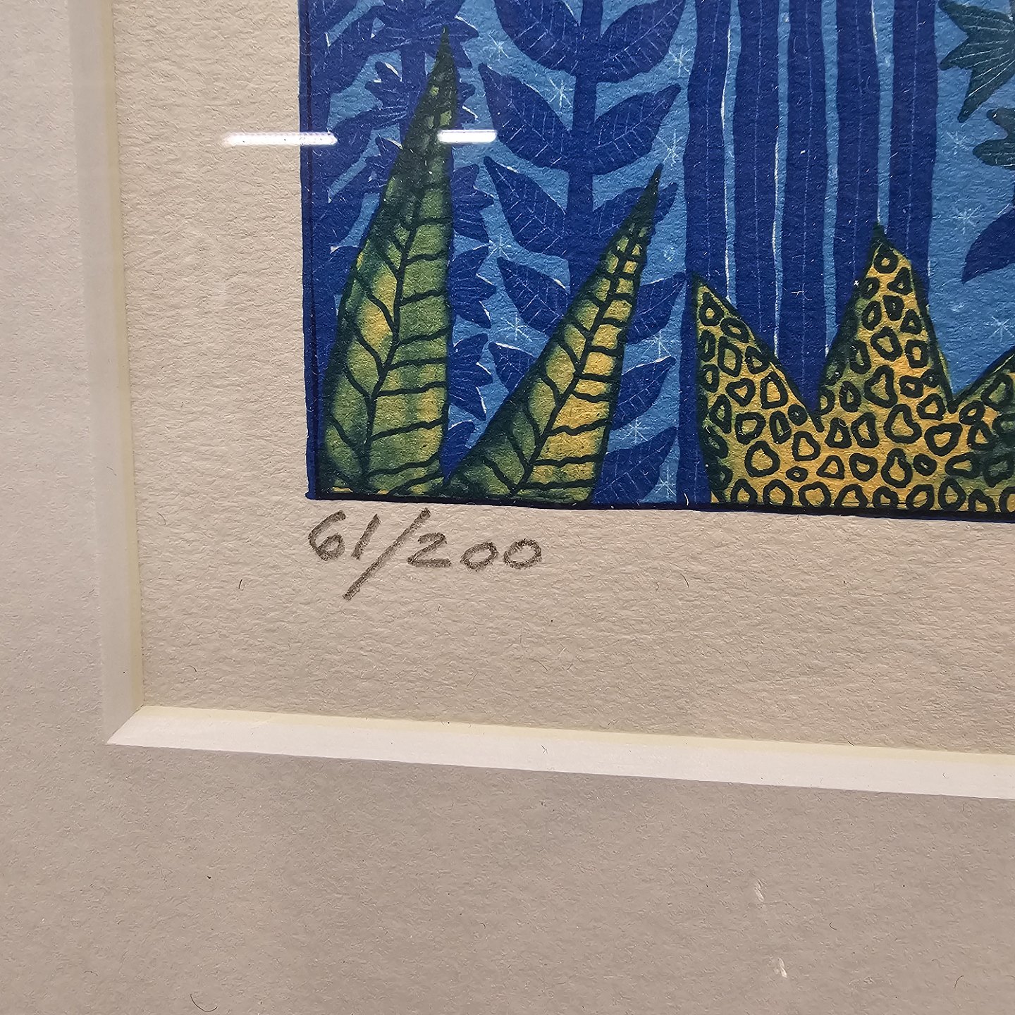 Litografi med motiv af svaner, fisk og havfruer. Nr 61/200