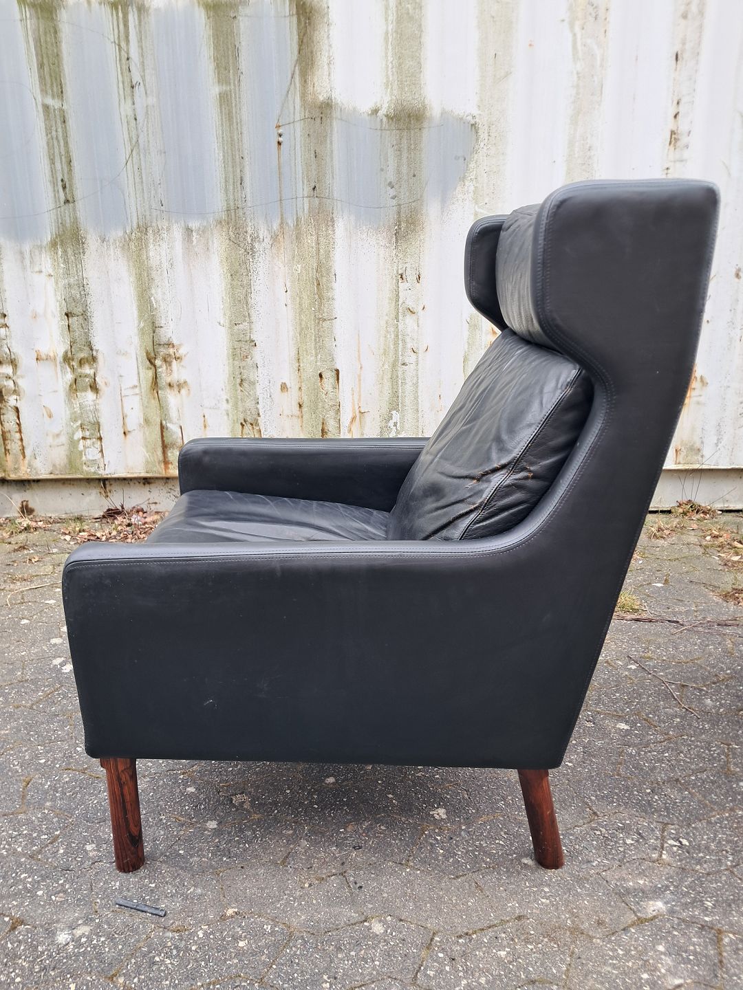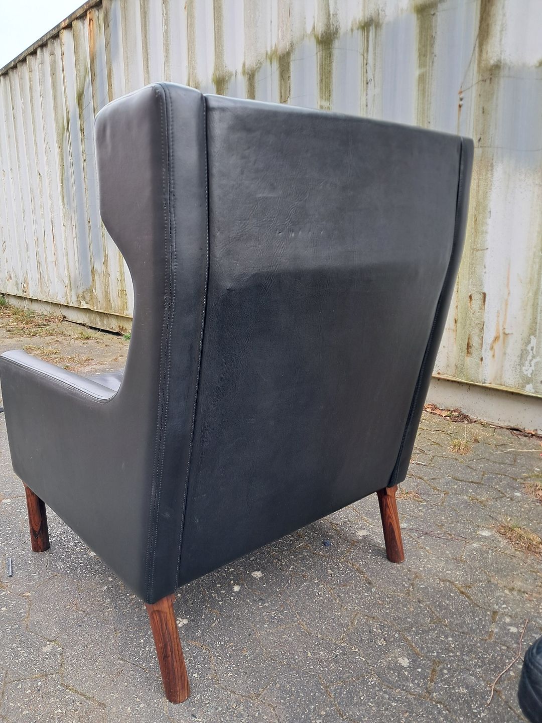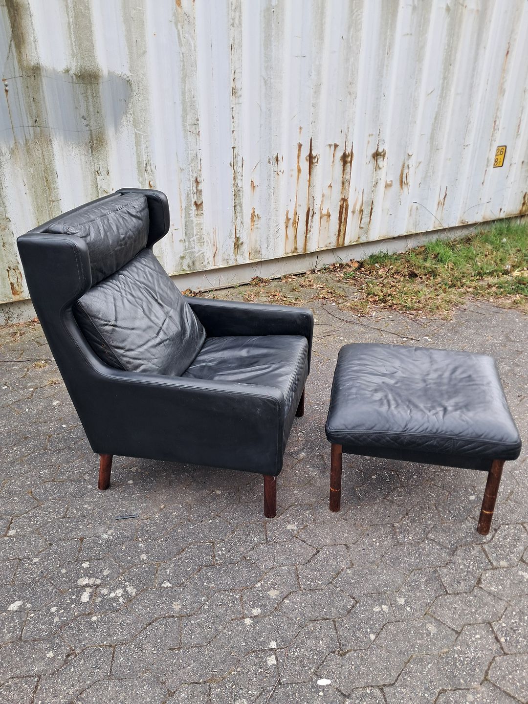 Fritz Hansen øreklapstol med fodskammel i læder, fra 1960erne.