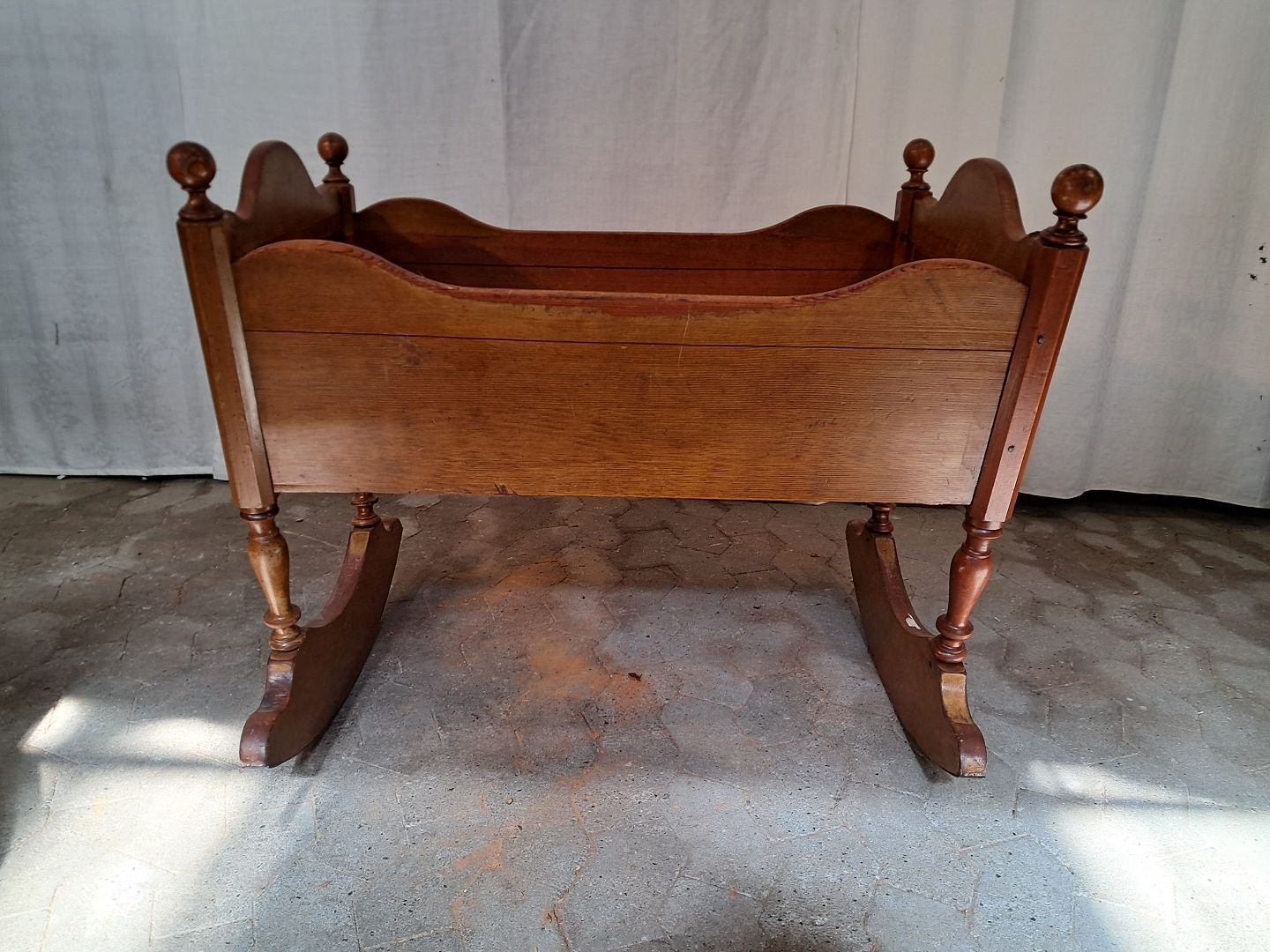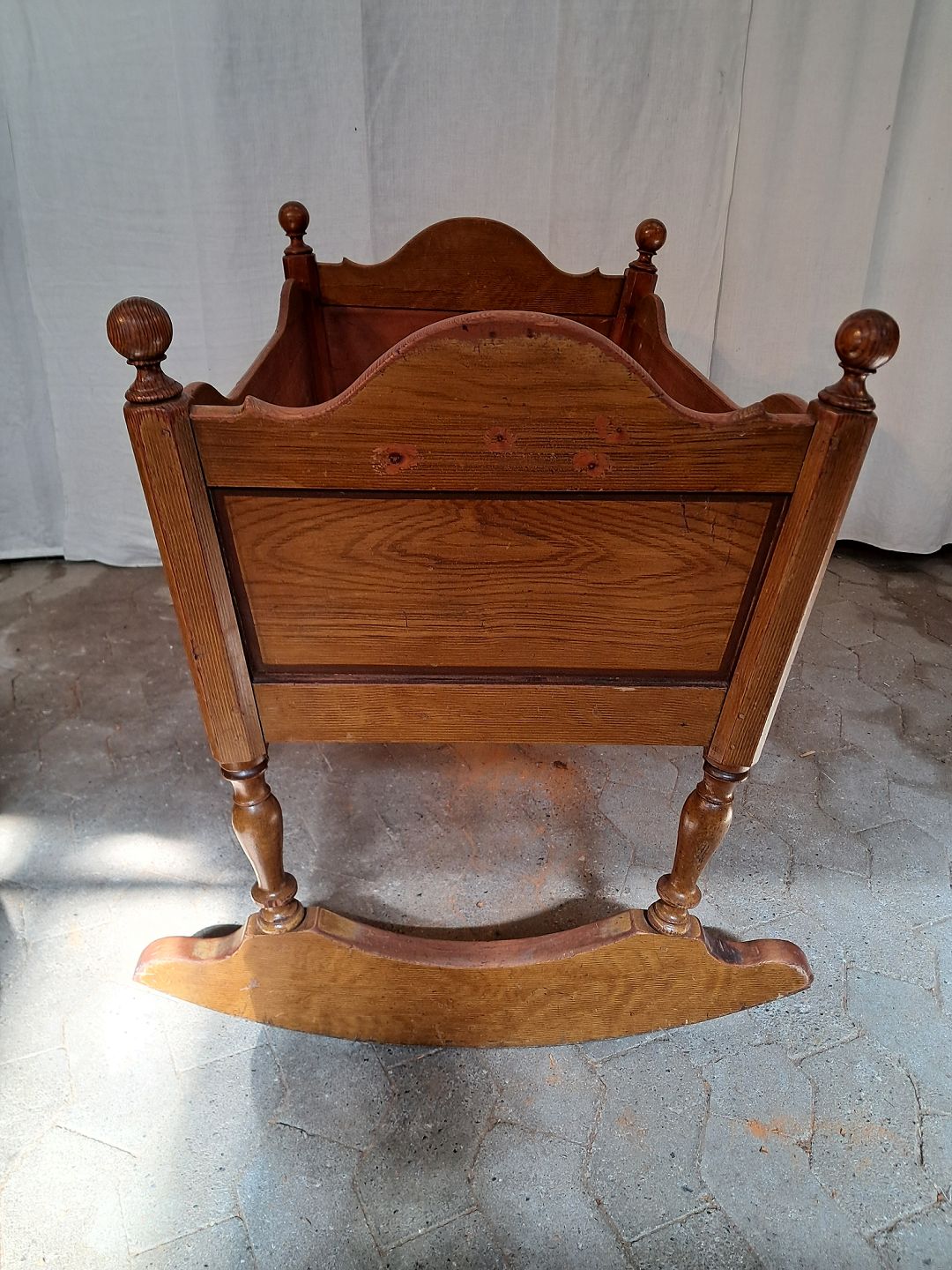Barneseng / Vugge i massivt fyrretræ, fra 1910erne.