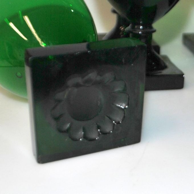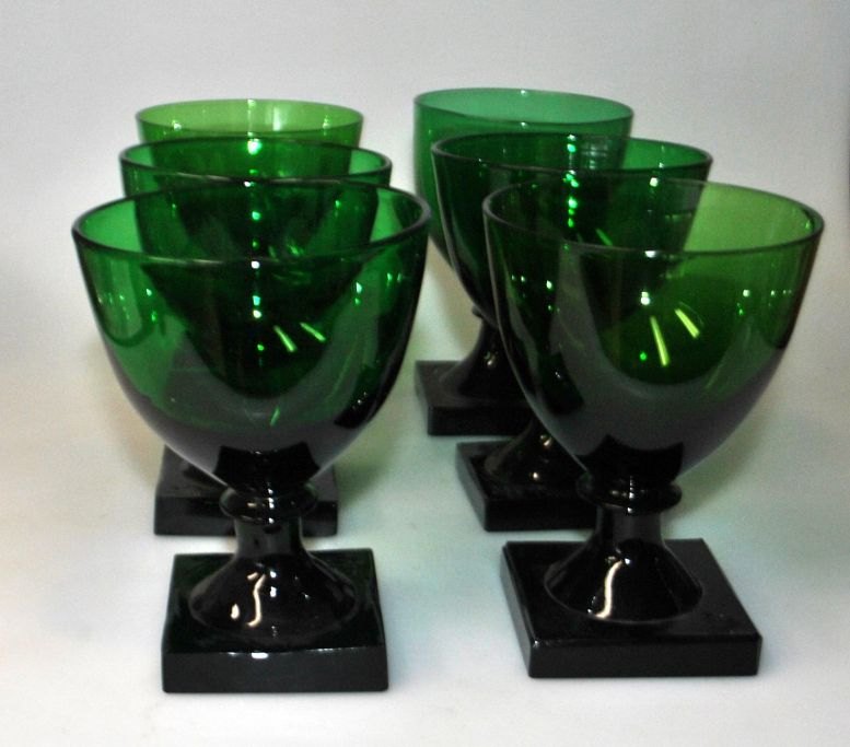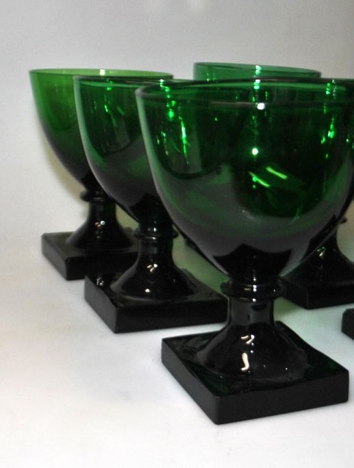 Gorm the Old wine glass, 19th century. Entirely green glass. Square pressed foot with pattern under the bottom and ball grinding. Height: approx. 12.5 cm. Different heights.
