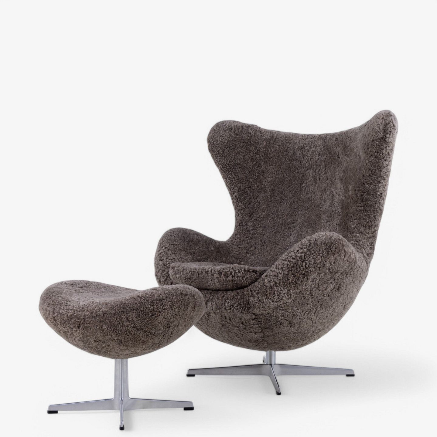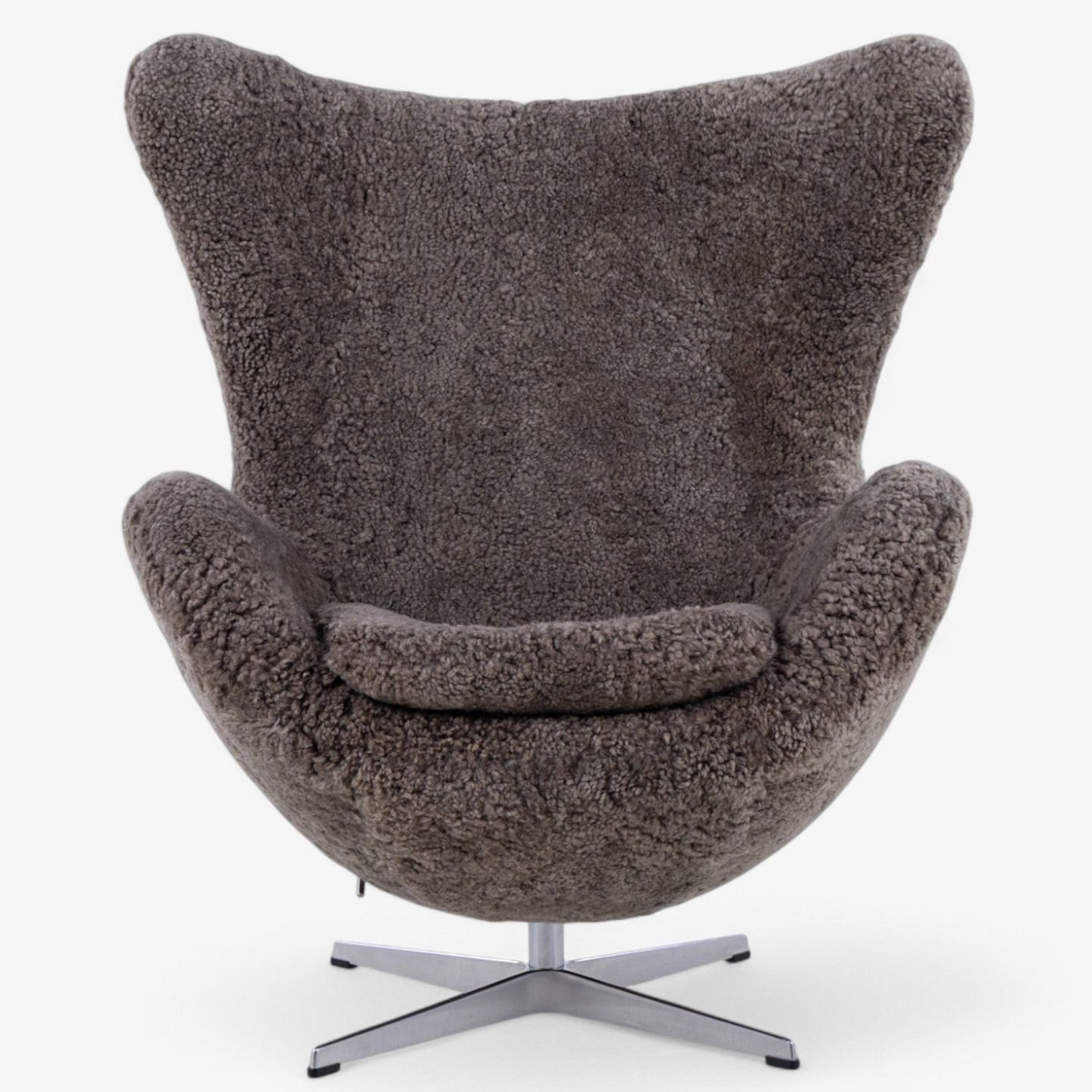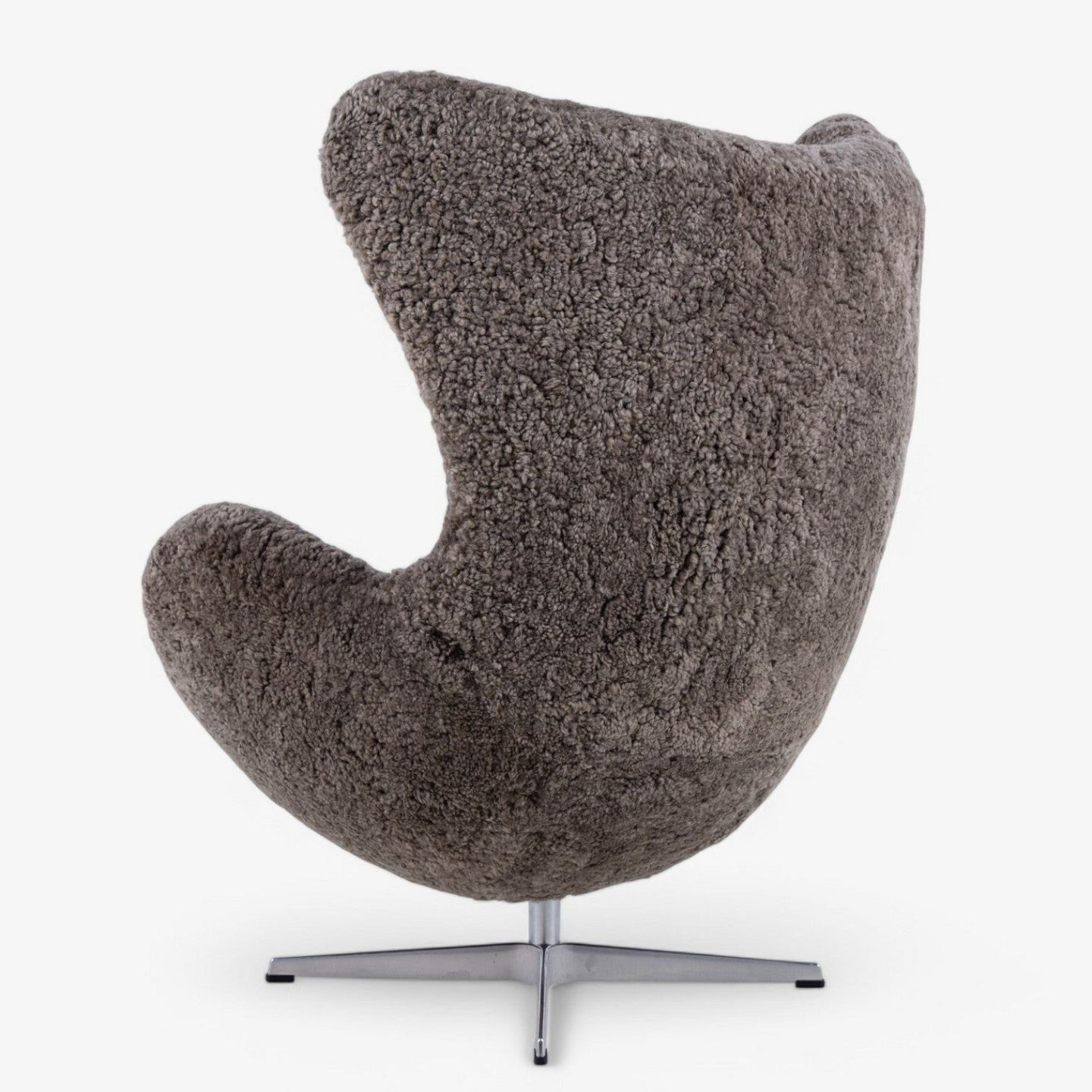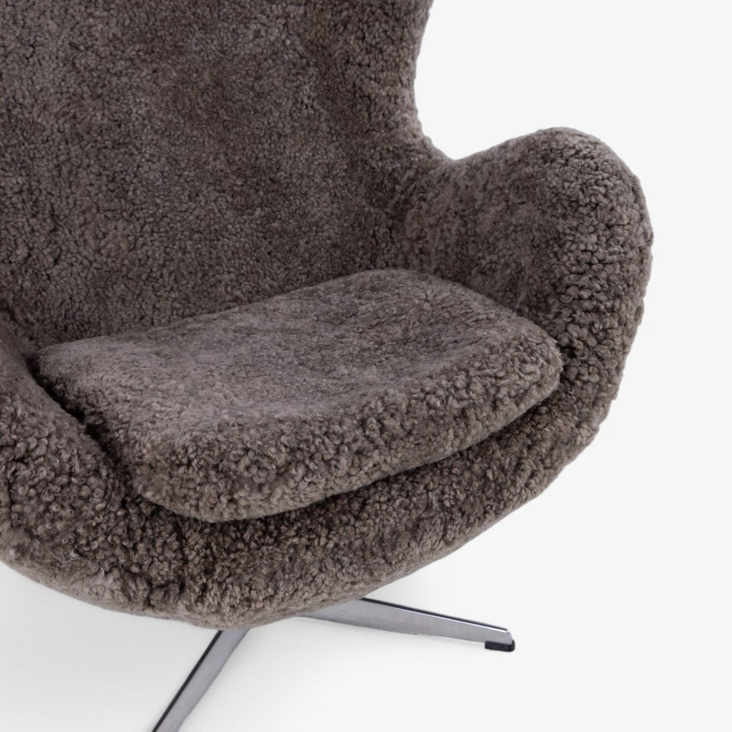 AJ 3316 - Nybetrukket 'Ægget'-lænestol i lammeskind (Sahara 07, Curly 17mm) med helstøbt aluminiumsfod.