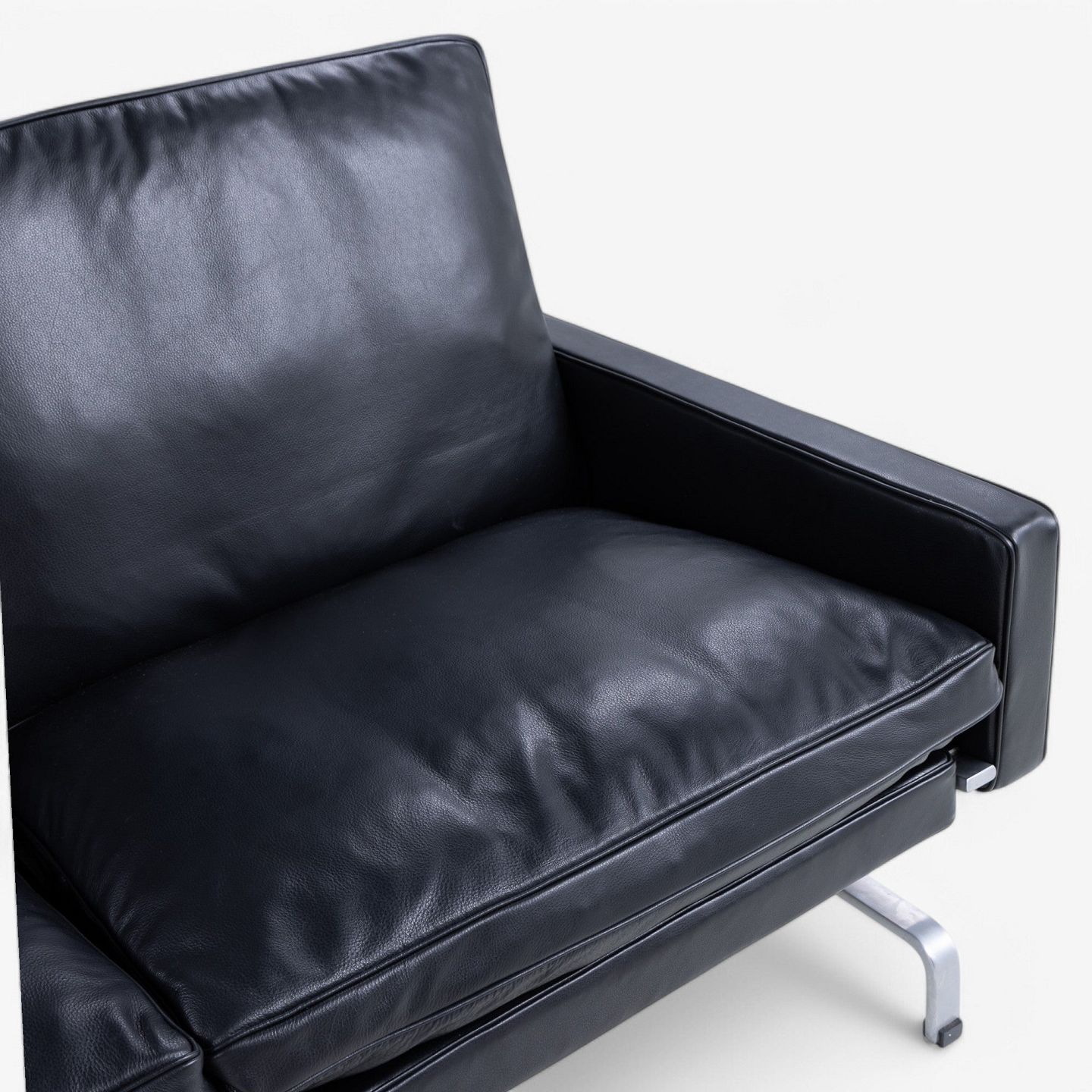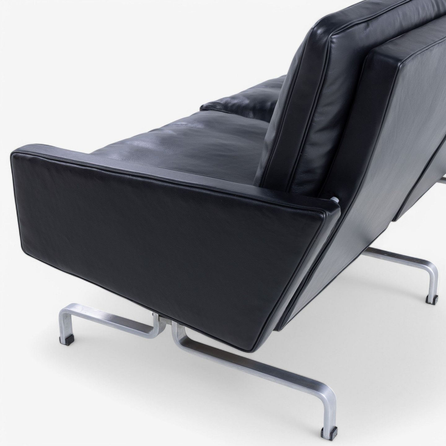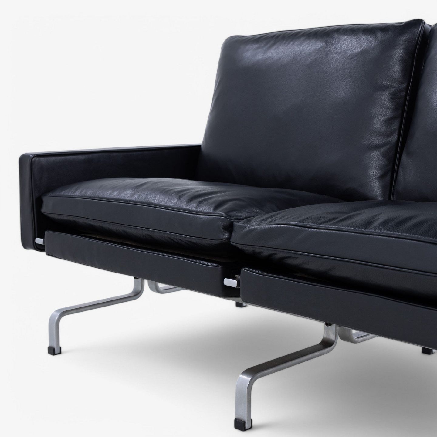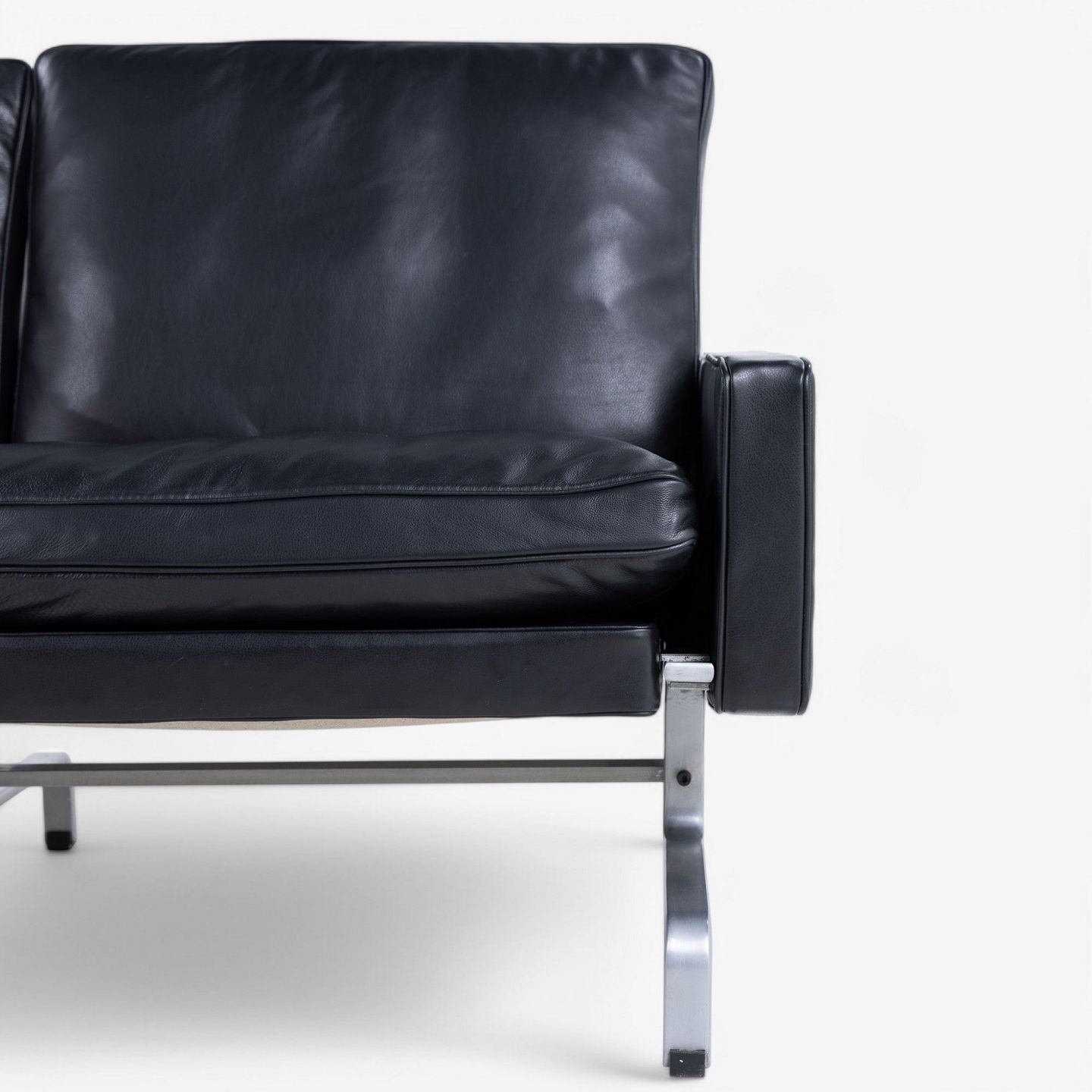 PK 31/3 - Newly upholstered 3-seater sofa in black KLASSIK leather with stainless steel frame.