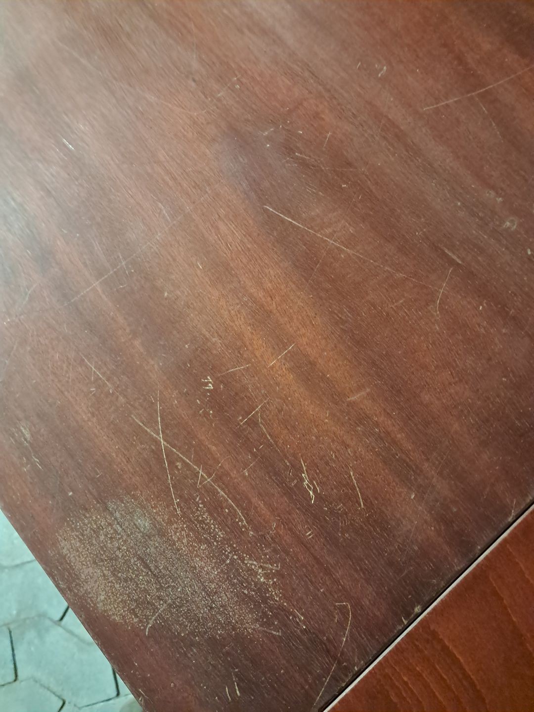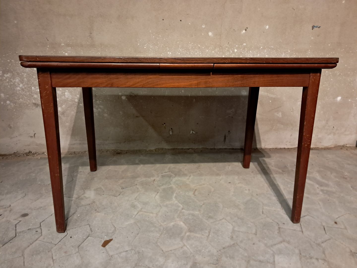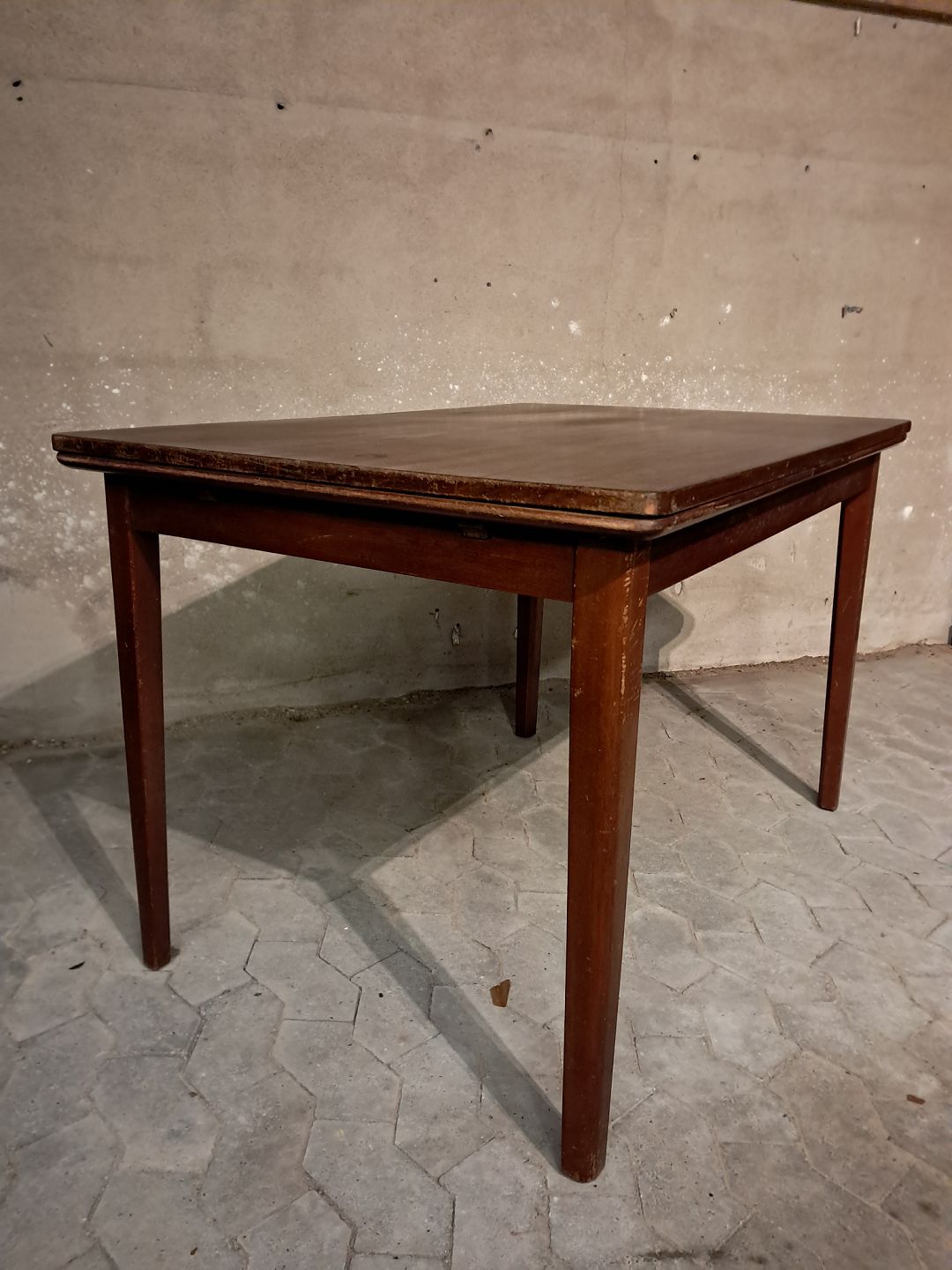 Bord i fineret mahogni med hollandsk udtræk, fra 1960erne.