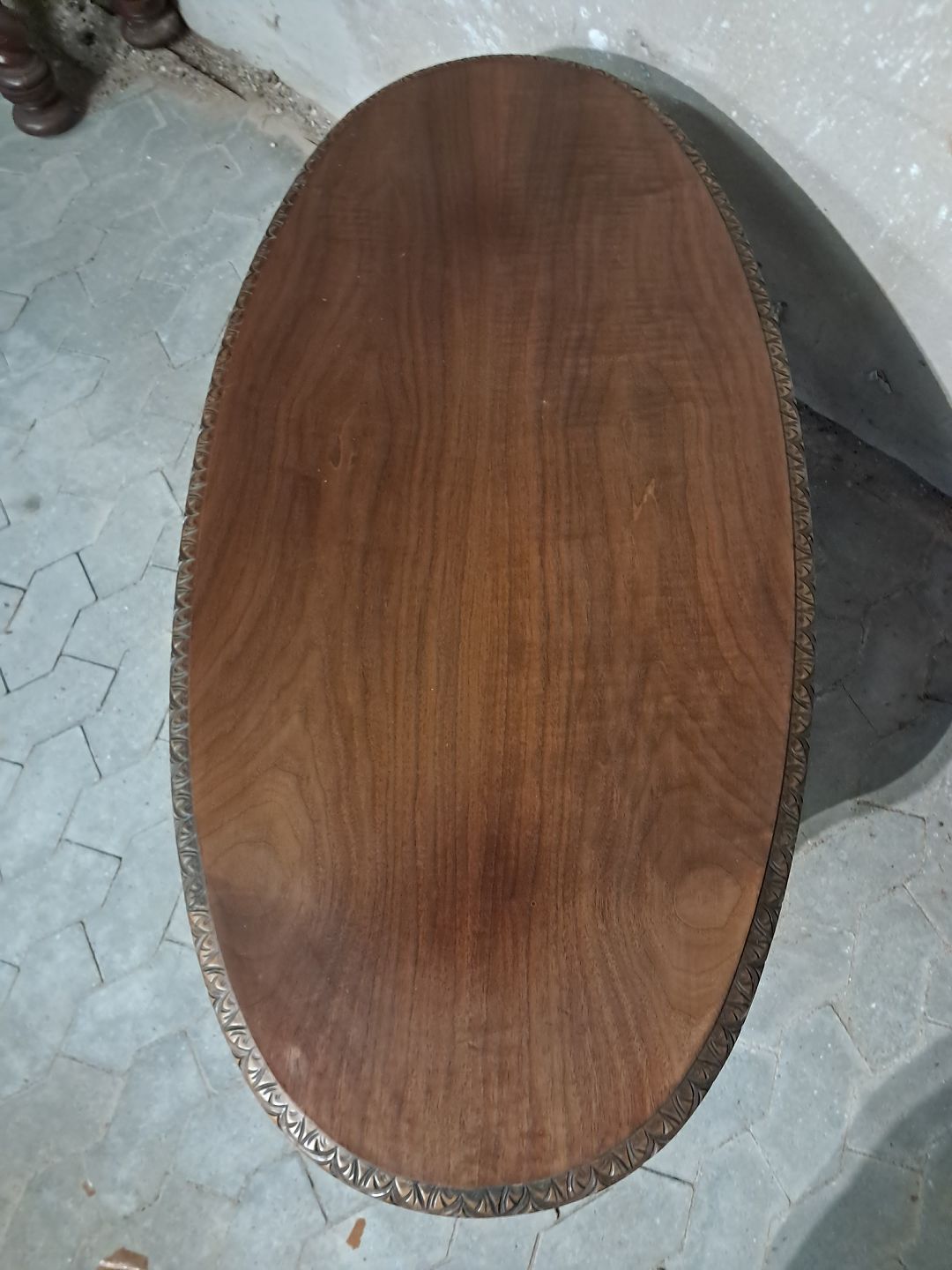 Sofabord i fineret nøddetræ, fra 1950erne.