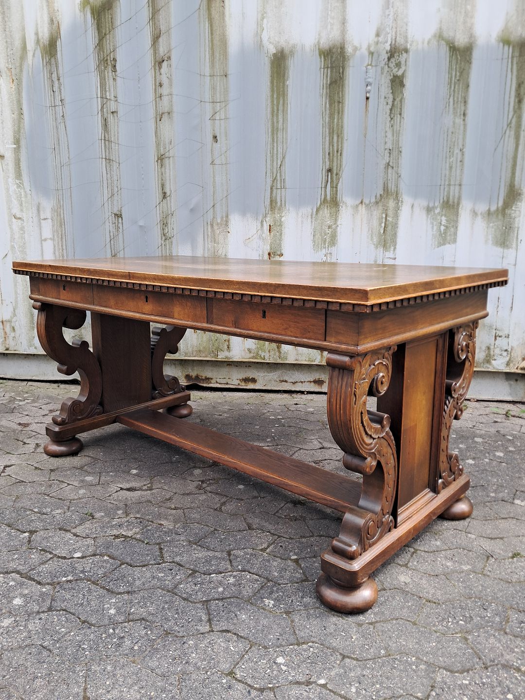 Bord i renaissance stil, af massivt egetræ med fineret bordplade, fra 1930erne.