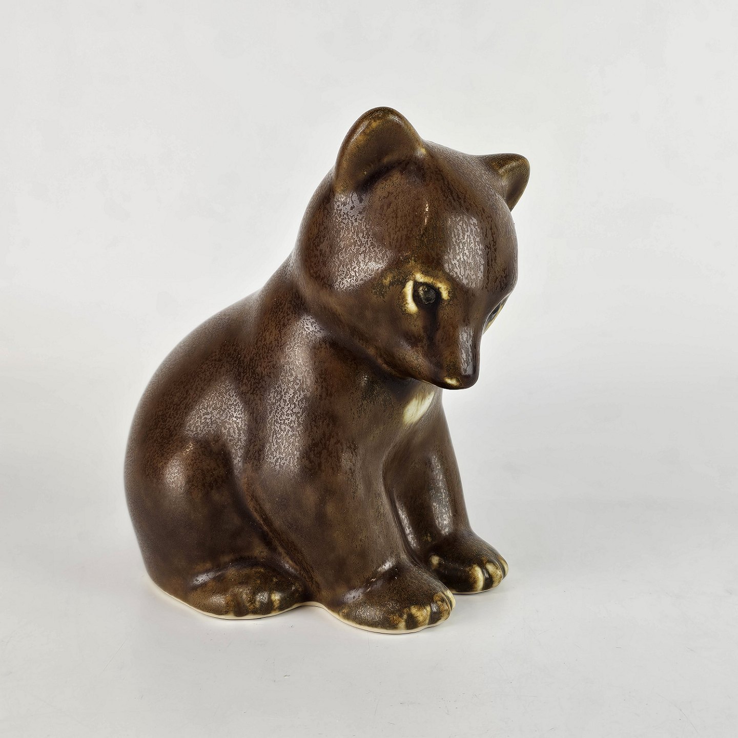 Figur i stentøj med motiv af en brun bjørneunge med hvid blis.