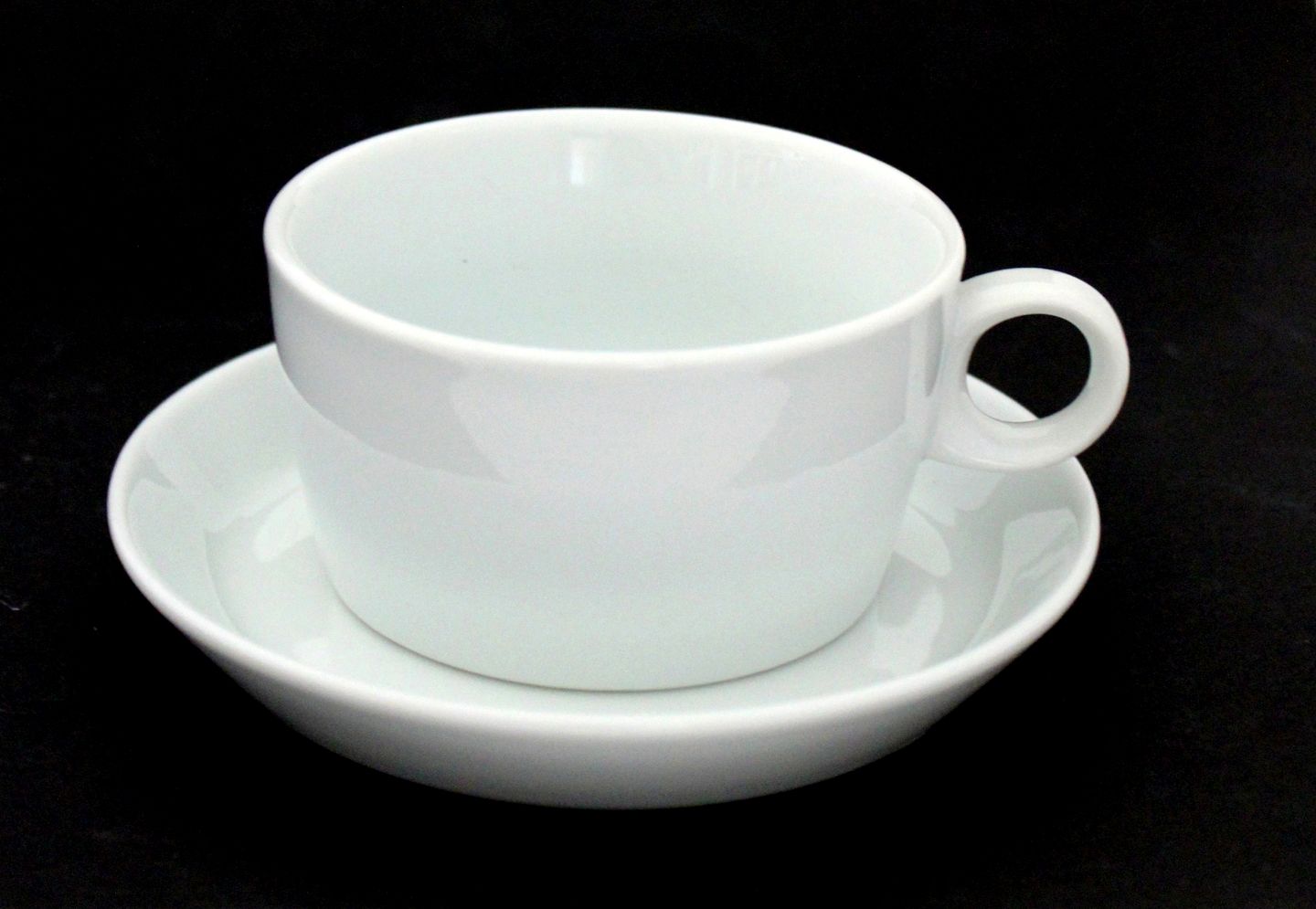Bing & Grøndahl, Hank, Kop med underkop. Stellet er designet af Erik Magnussen i 1977, som et praktisk, rationelt og robust hverdagsstel med færre dele, f.eks. er der kun en slags kop. Koppen kan også bruges som æggevarmer, hvis den stilles omvendt. Kop. Nr. 746. 15 cl. Højde 5,2 cm. Diameter 9,5 cm. Underkop. Nr. 747. Højde 2,2 cm. Diameter 14 cm. Flot stand. Pris: 150 kr. stk. Lager: 10