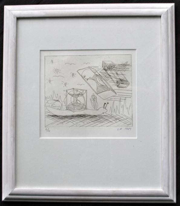 Ravn, Lars (1959 - ) Denmark: Composition, 1989. Etching. Signed: LR 1989. 6/10. H: 16.5 cm. W: 20 cm.