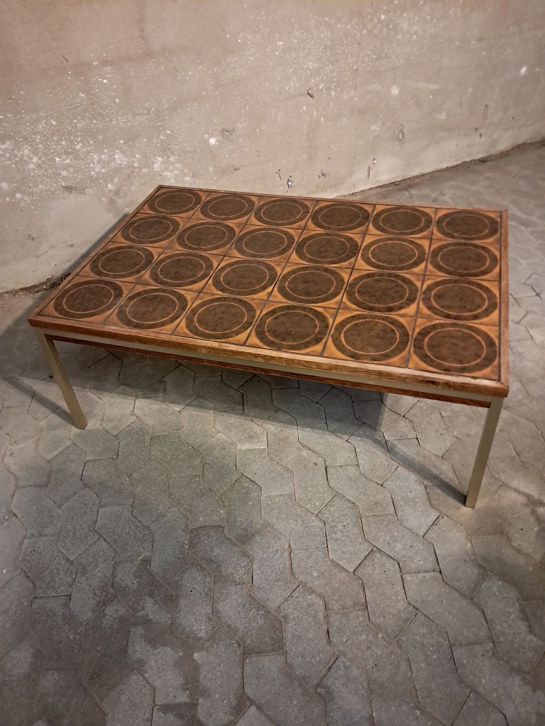 Kakkel sofabord i palisander og metal, fra 1960erne.
