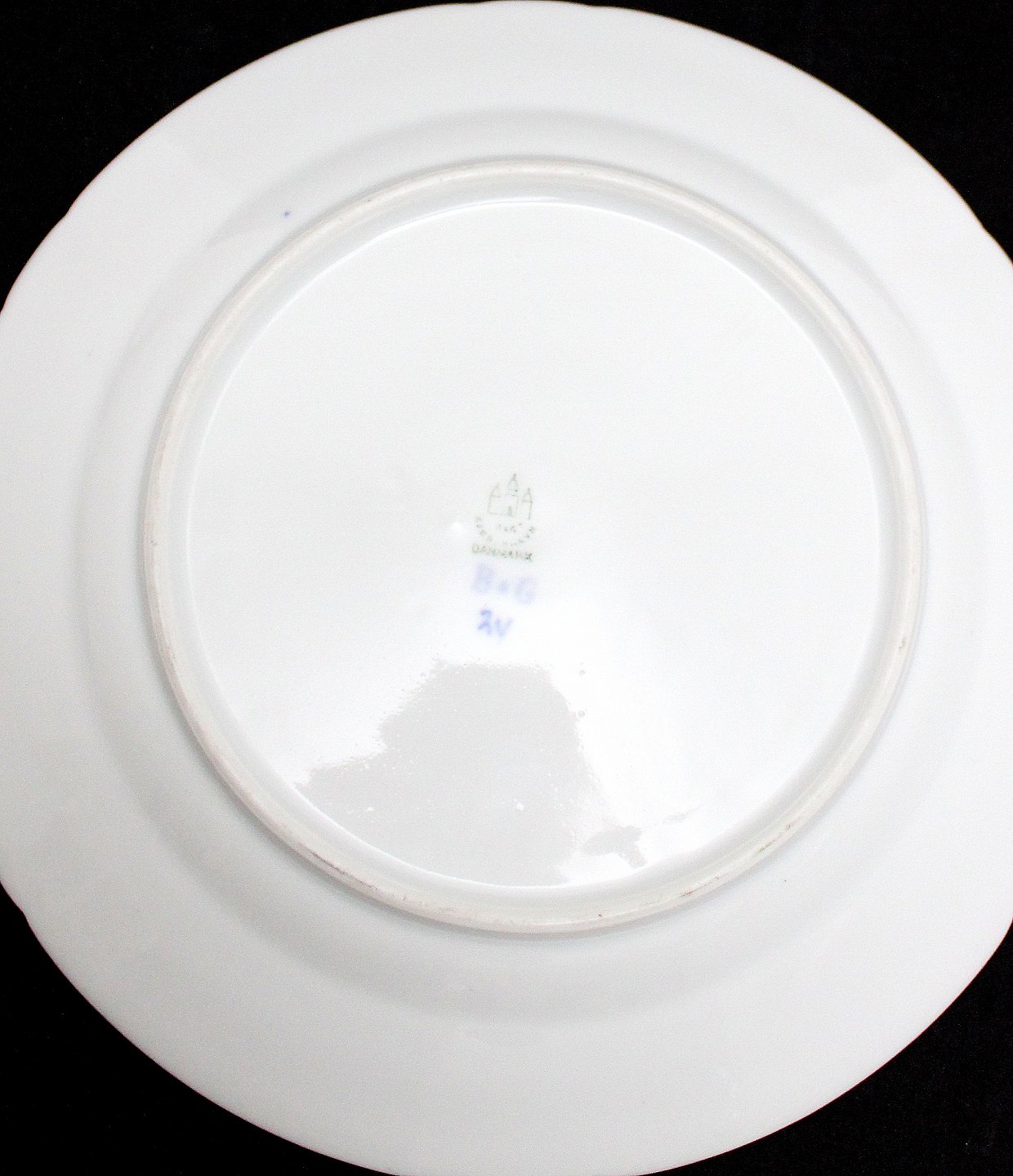 Bing & Grøndahl, Empire, Middagstallerken. Diameter 24,5 cm. Produceret i perioden 1915-1948. Der er ingen nr. på tallerkenerne fra den tid og selvom det er I. sortering, forekommer der små brændings og malingsnister i glasuren. I. sortering. Pris: 275 kr. kr. stk. Lager: 3