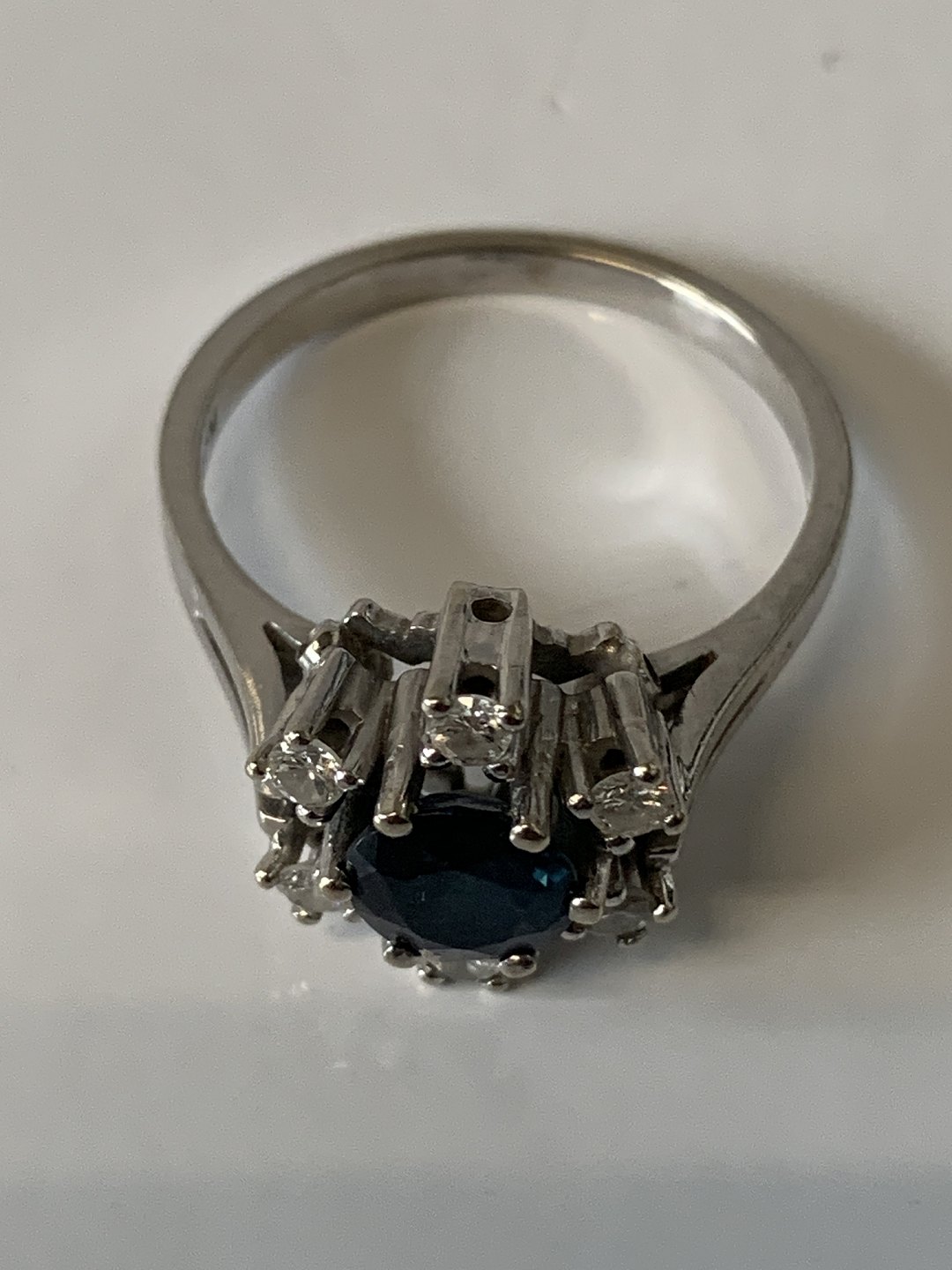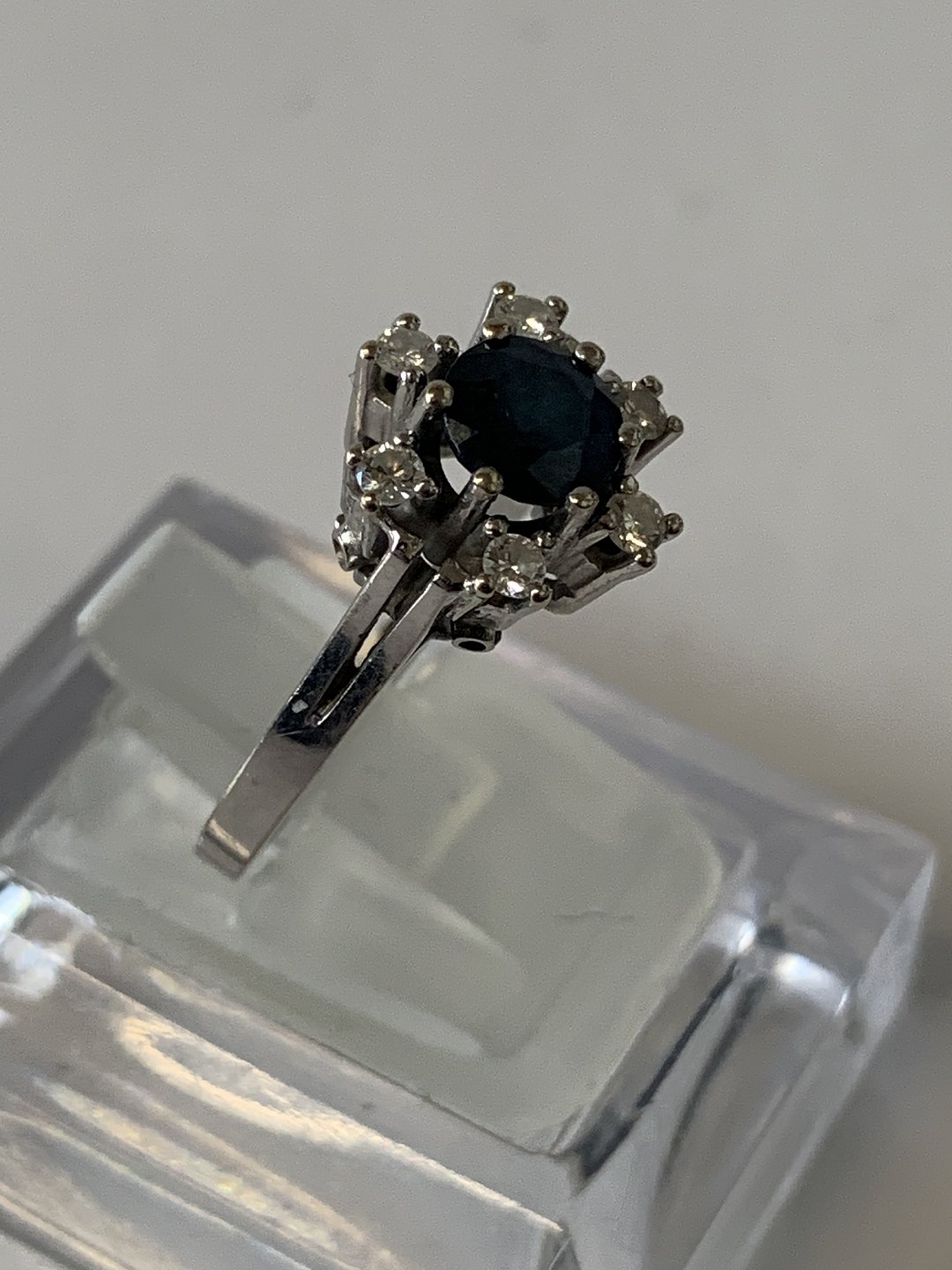 White Gold Ring with Sapphire & Diamonds, 14 Karat