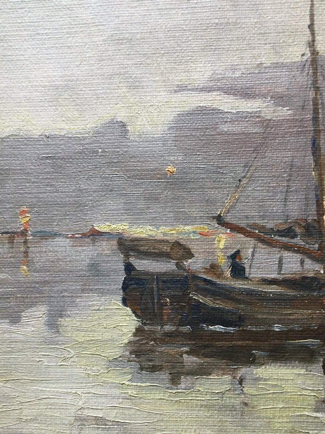 Maleri af E. Thorbjørn - Sejlskibe på vandet.
