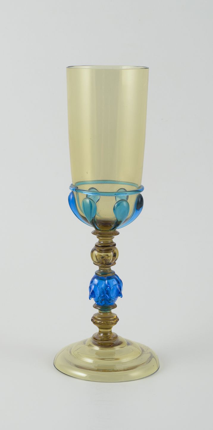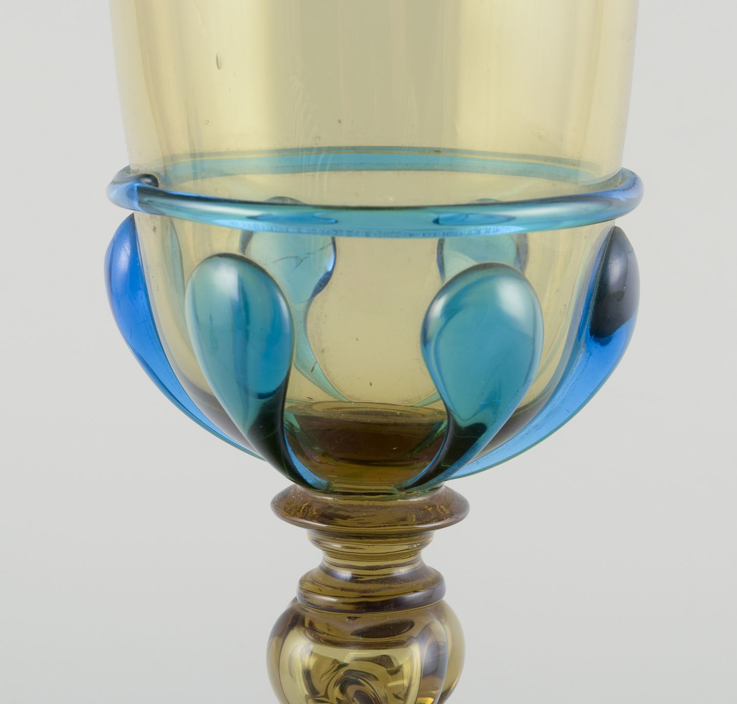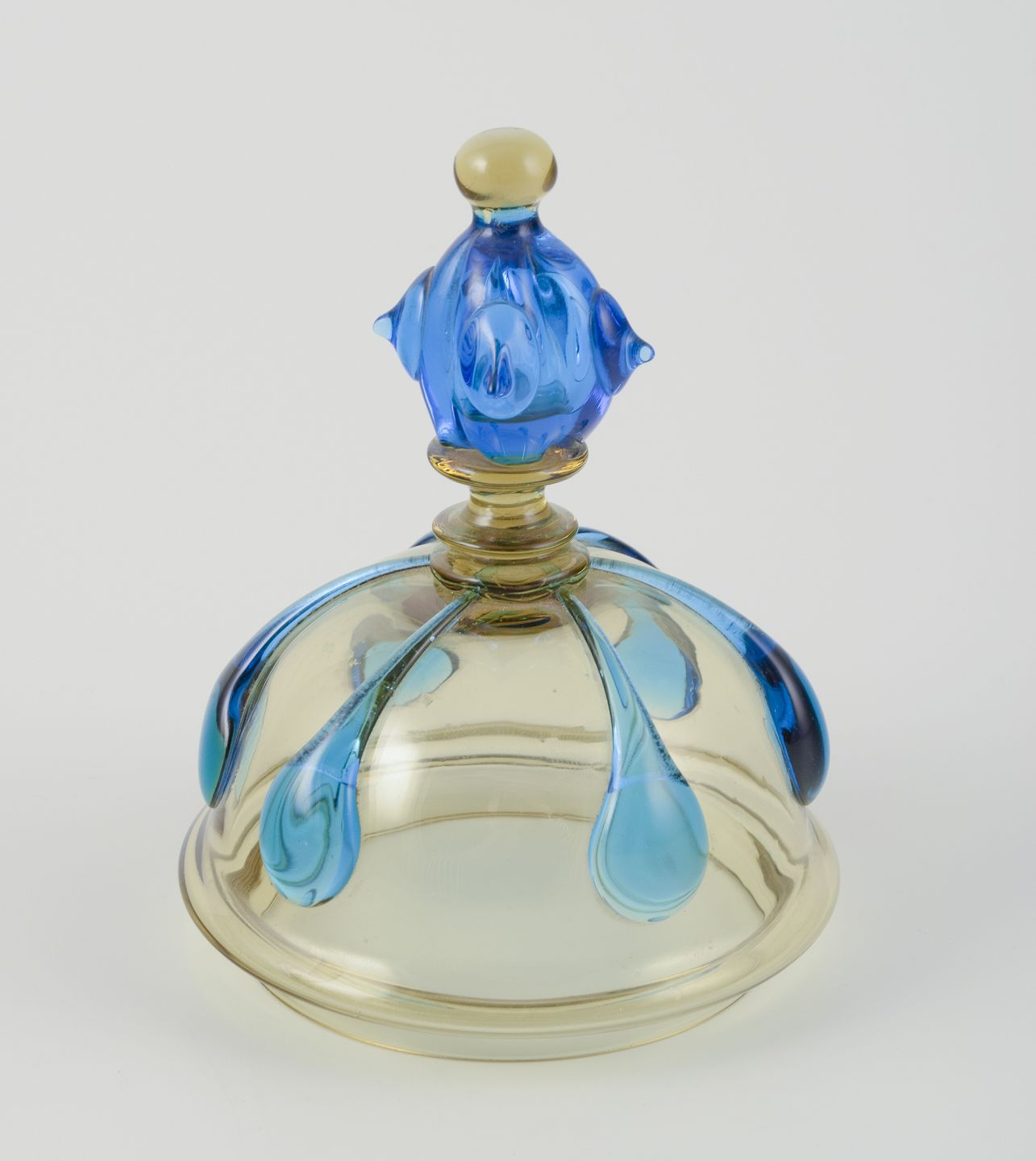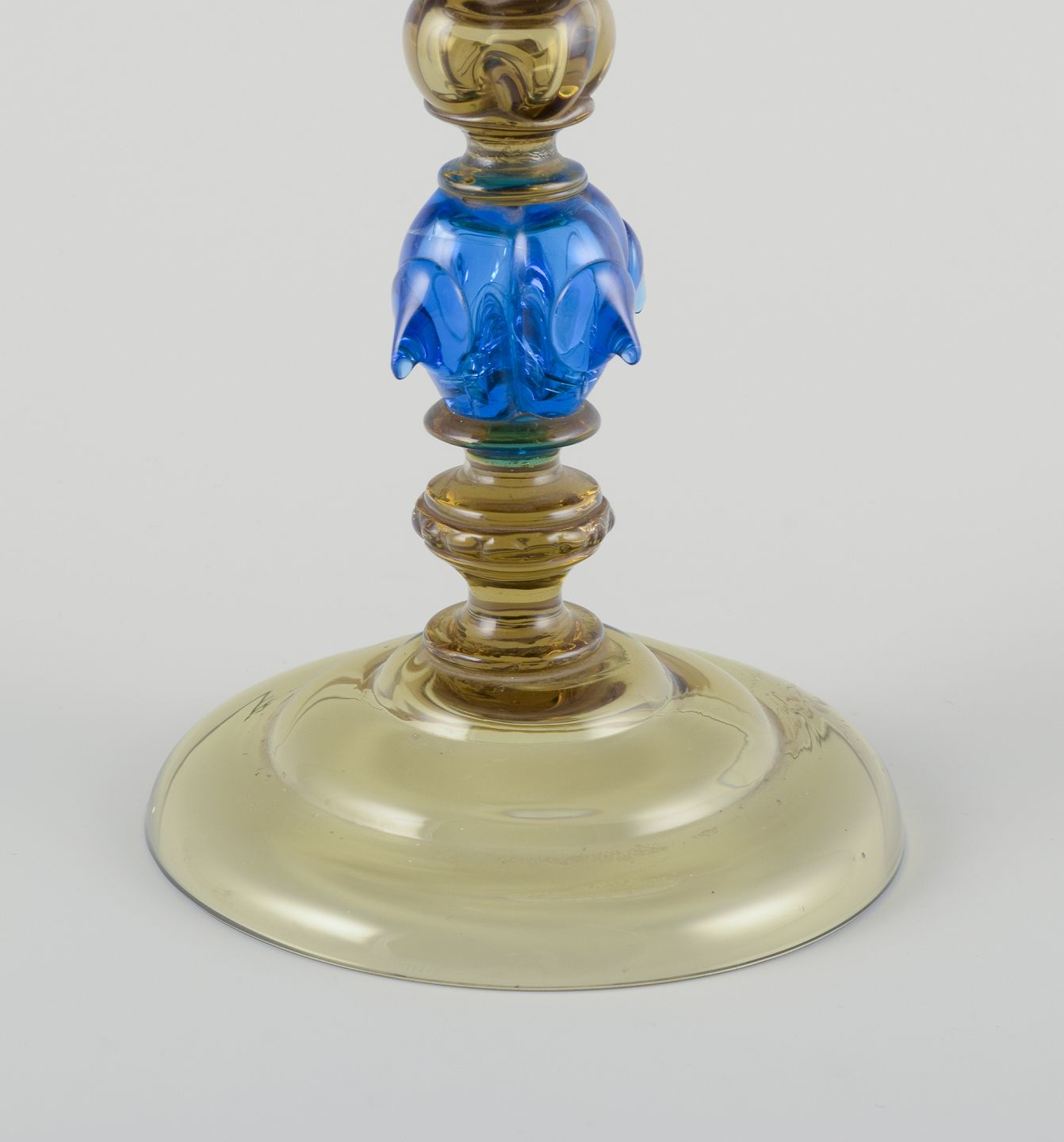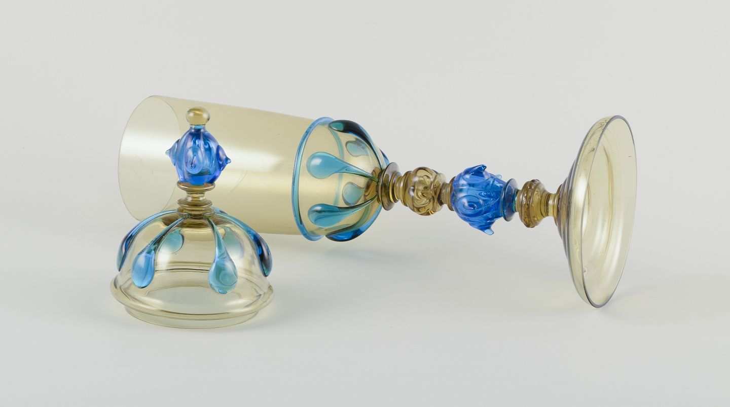 Murano, Italien. Stor pokal lågvase af blåt og røgfarvet kunstglas.