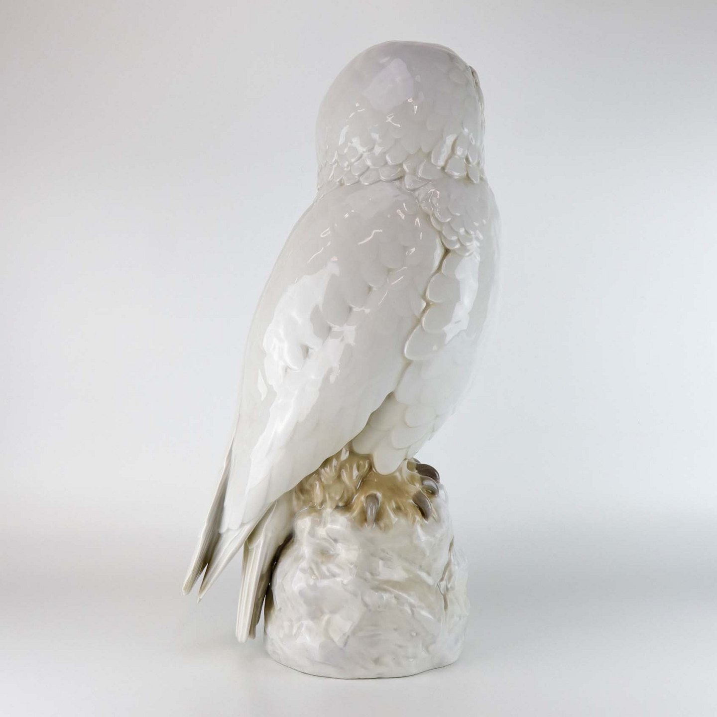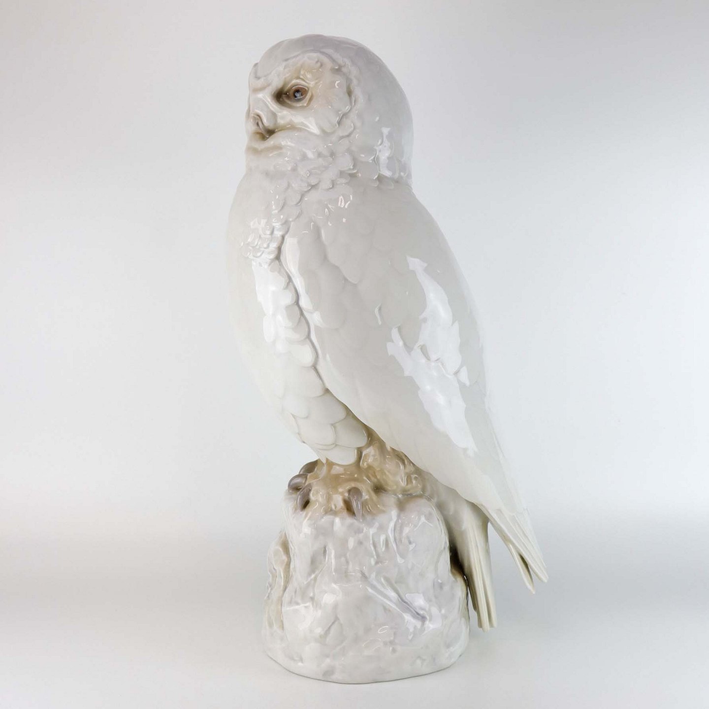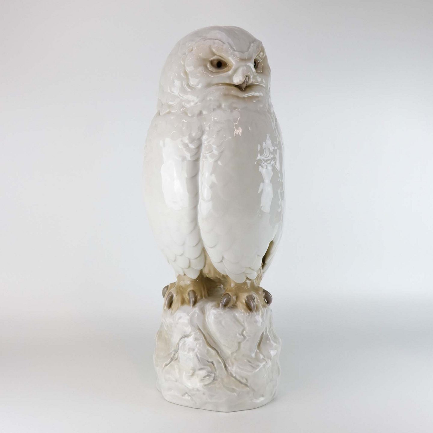 Stor figur i porcelæn med motiv af en sneugle siddende på en sten. Nr. 1500