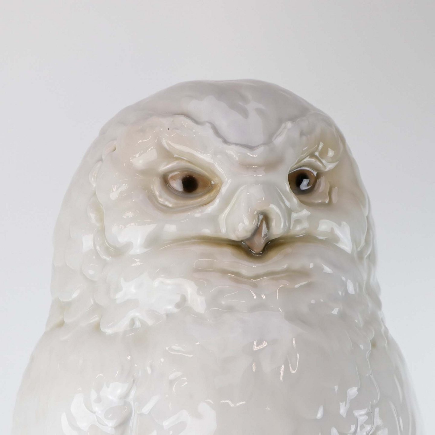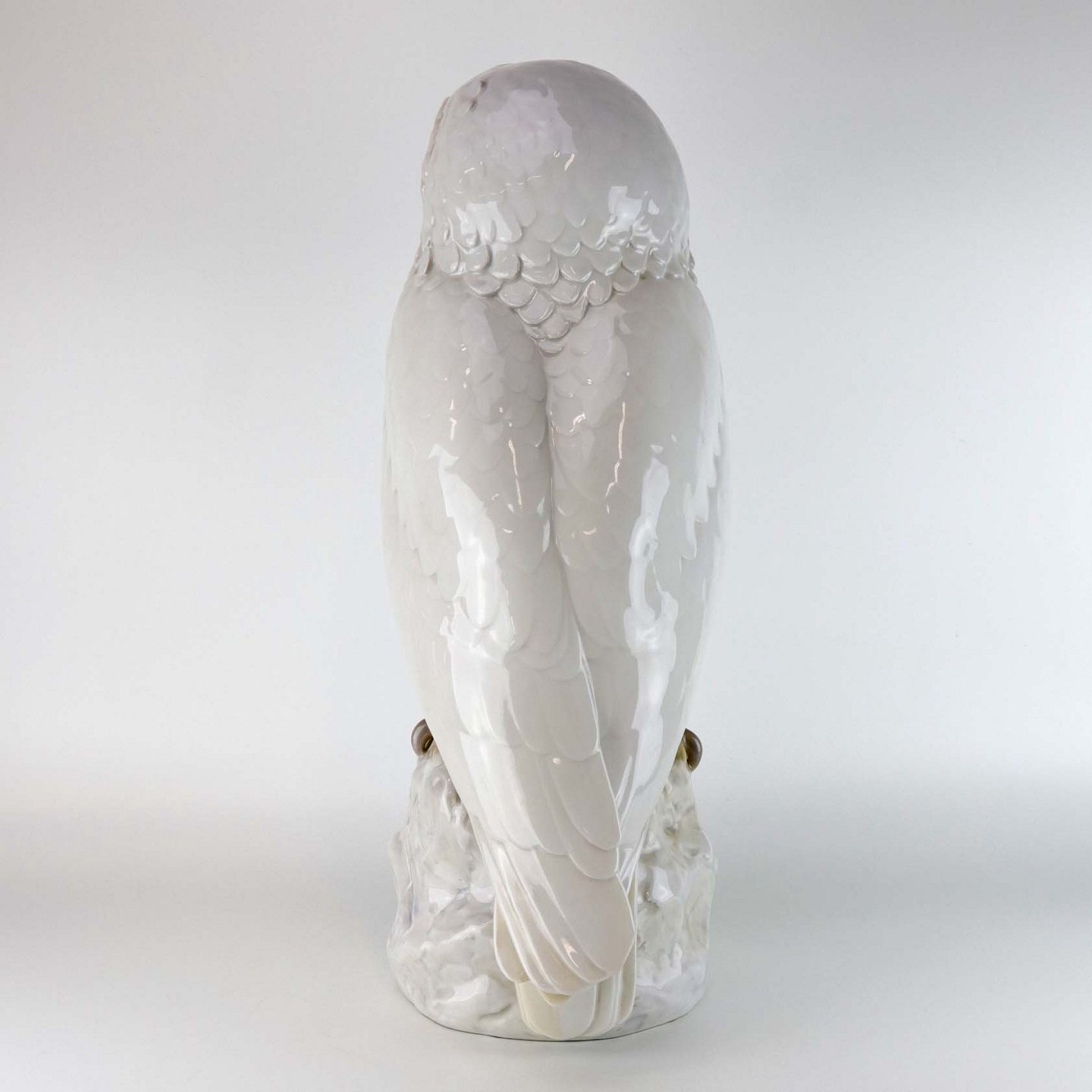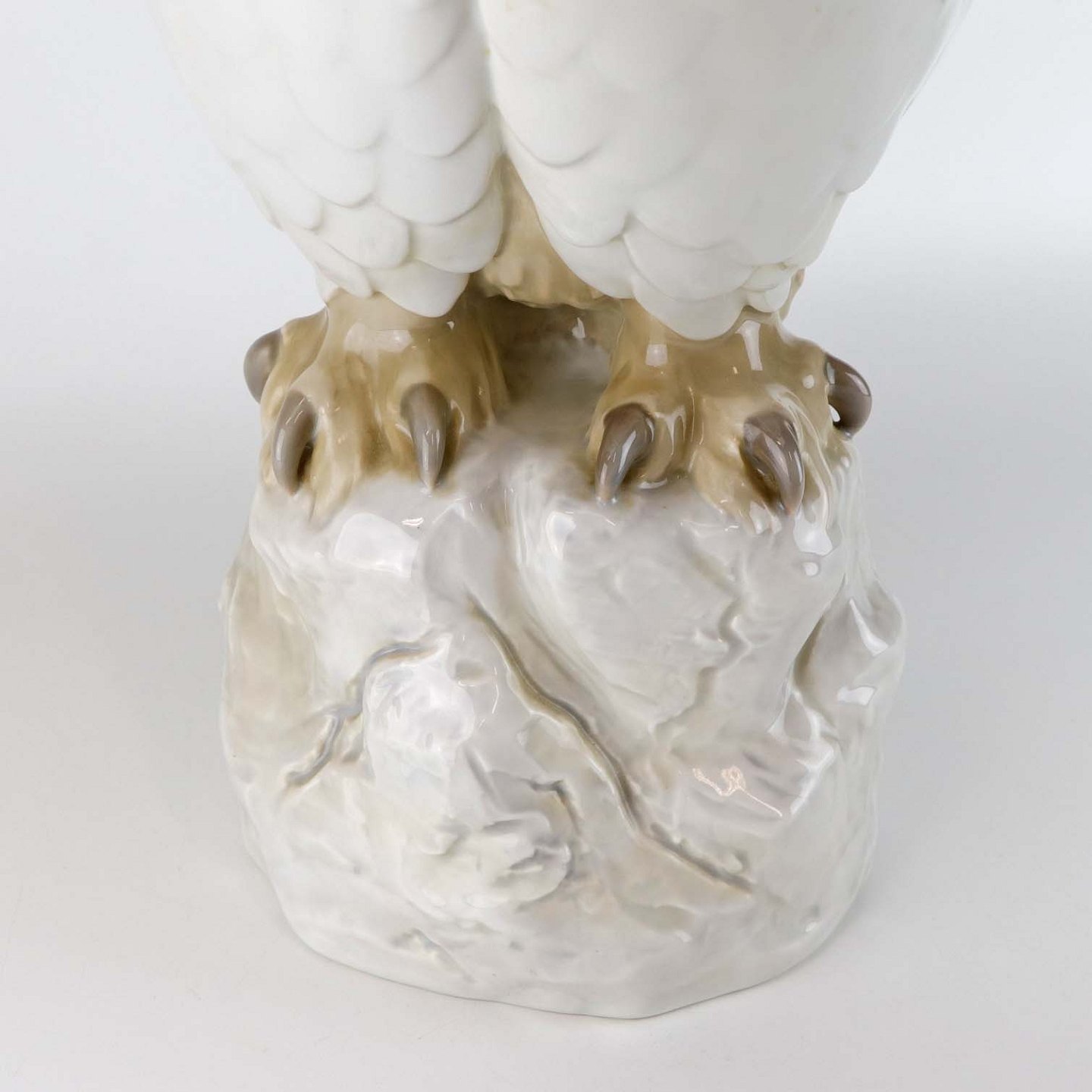 Stor figur i porcelæn med motiv af en sneugle siddende på en sten. Nr. 1500