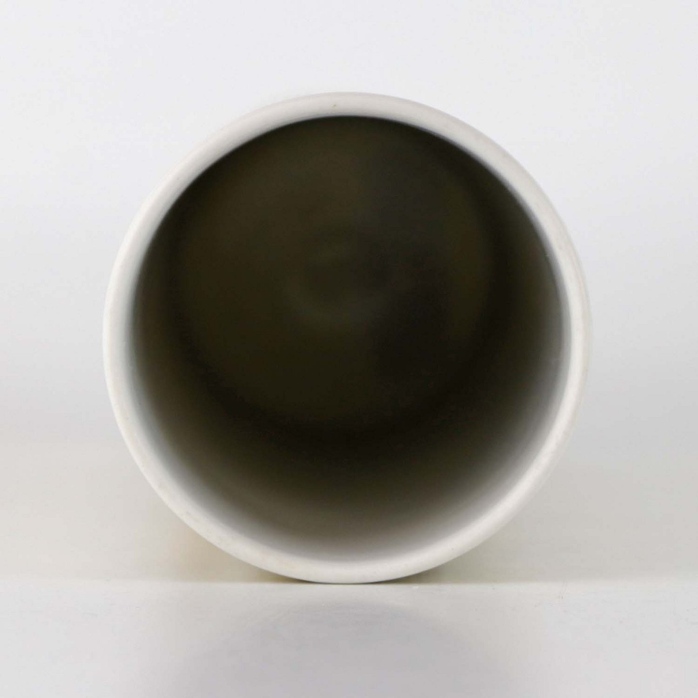 Cylinderformet vase i hvidt porcelæn med gylden dekoration