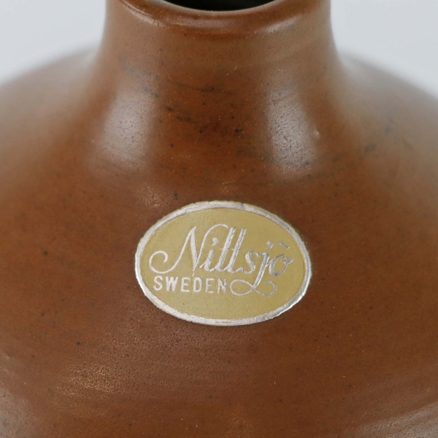 Svensk vase i glaseret brun keramik og smal hals. Nr. 1335-GT