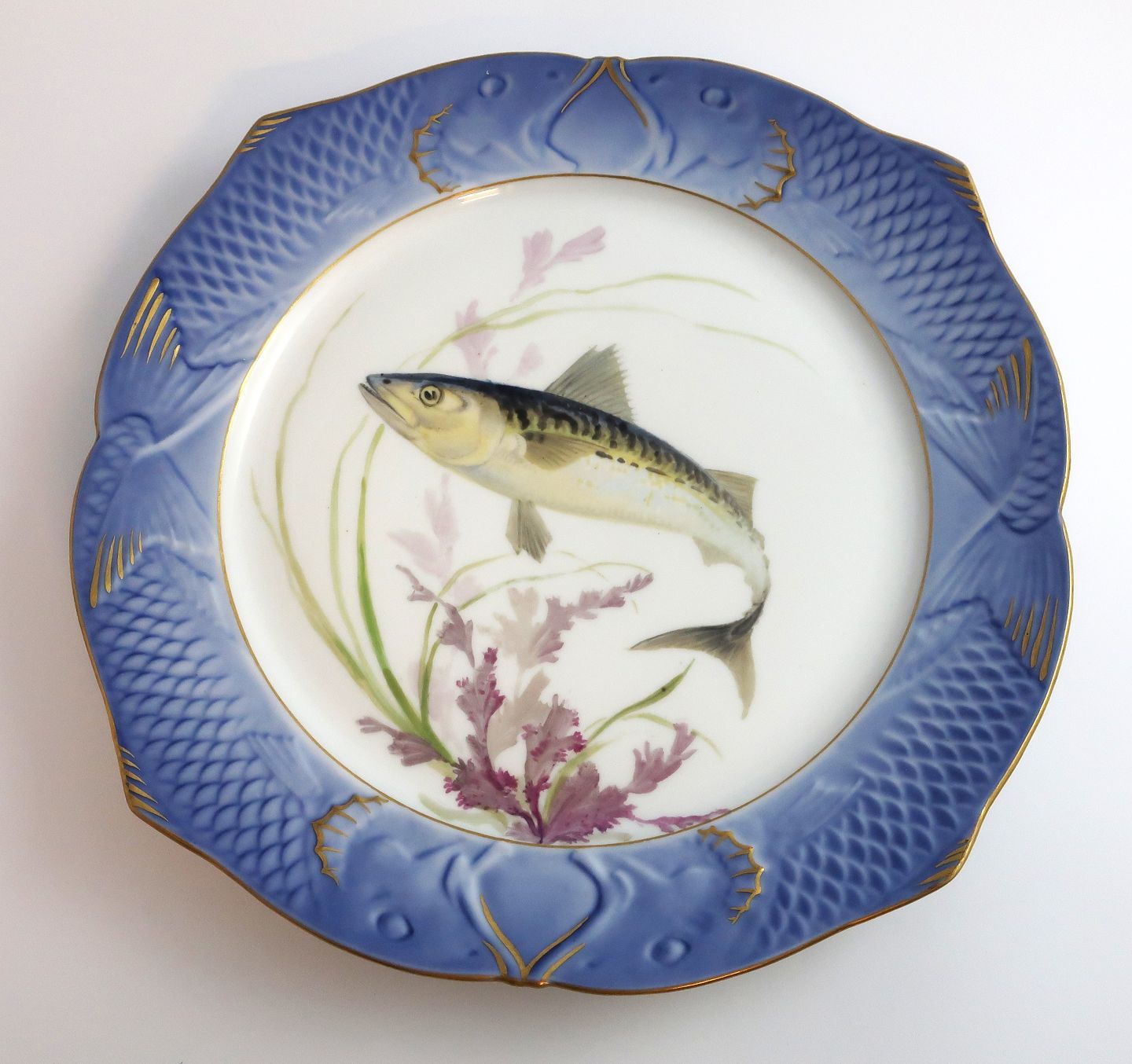 Royal Copenhagen. Fiskestel No.19. Model 3002. Diameter 22,5 cm. Scomper scomber. Produceret før 1923. (1 sortering)
