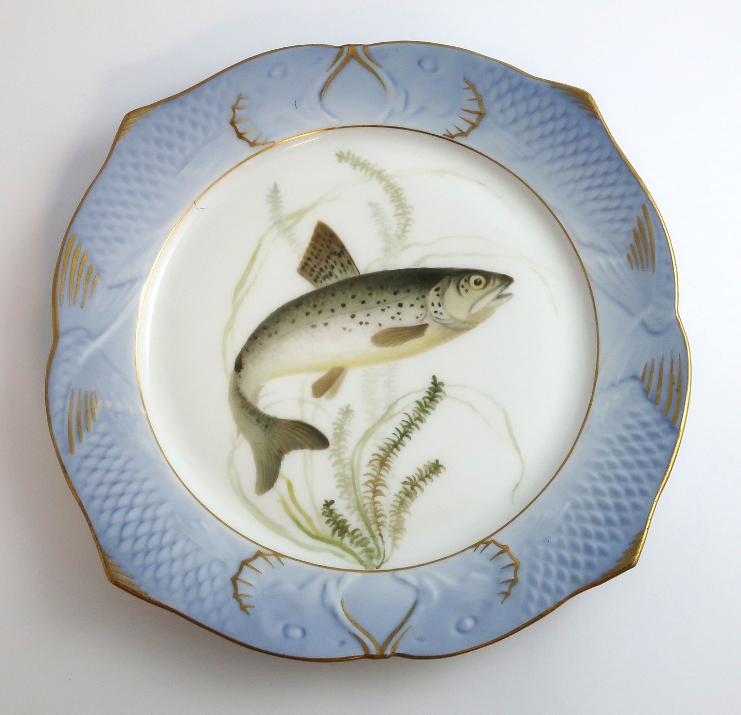 Royal Copenhagen. Fish set No.19. Model 3002. Diameter 22.5 cm. Salmo cæcifer. Produced before 1923. (1 quality)