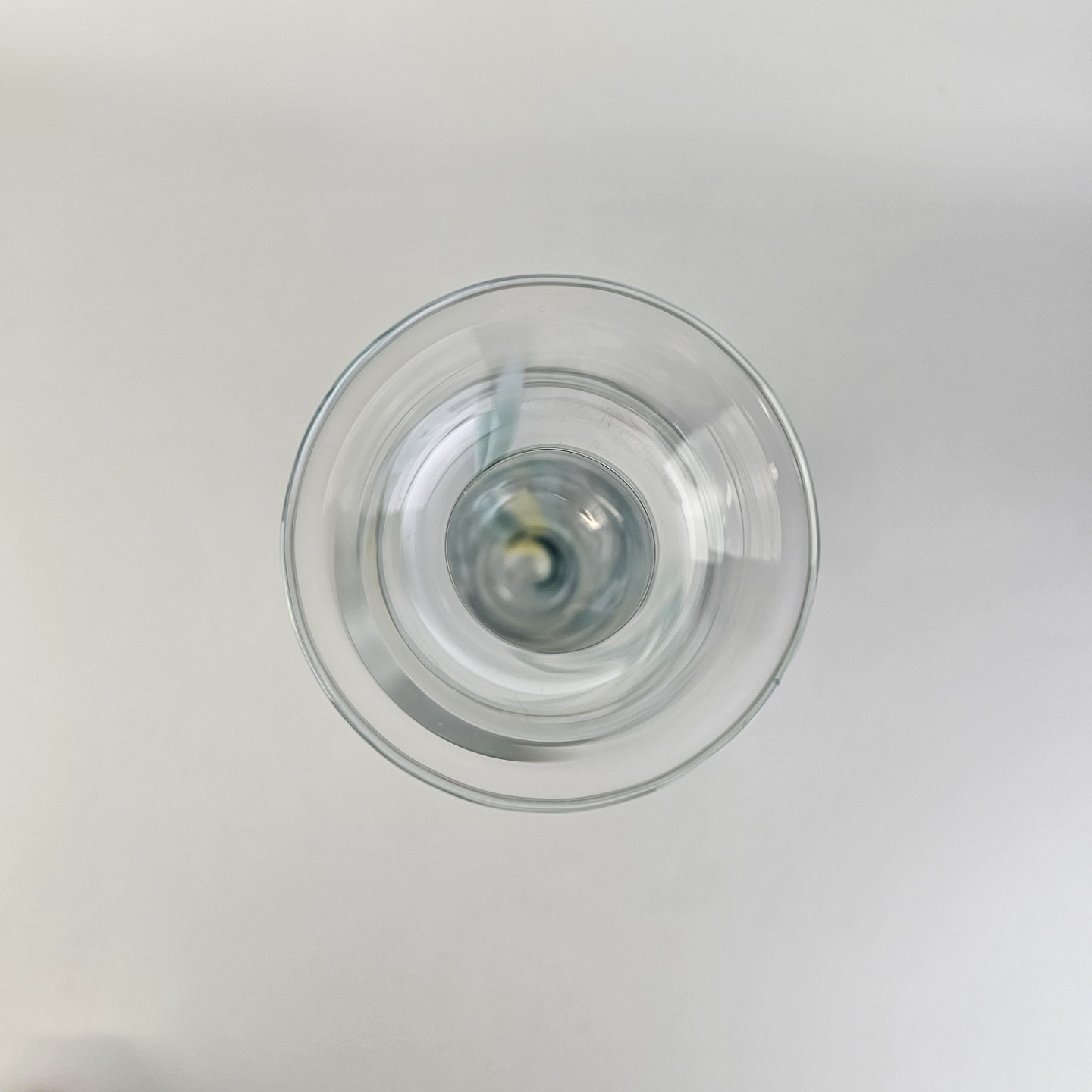 Høj, slank Harmonyvase i klart glas, med gul og blå farve dekoration