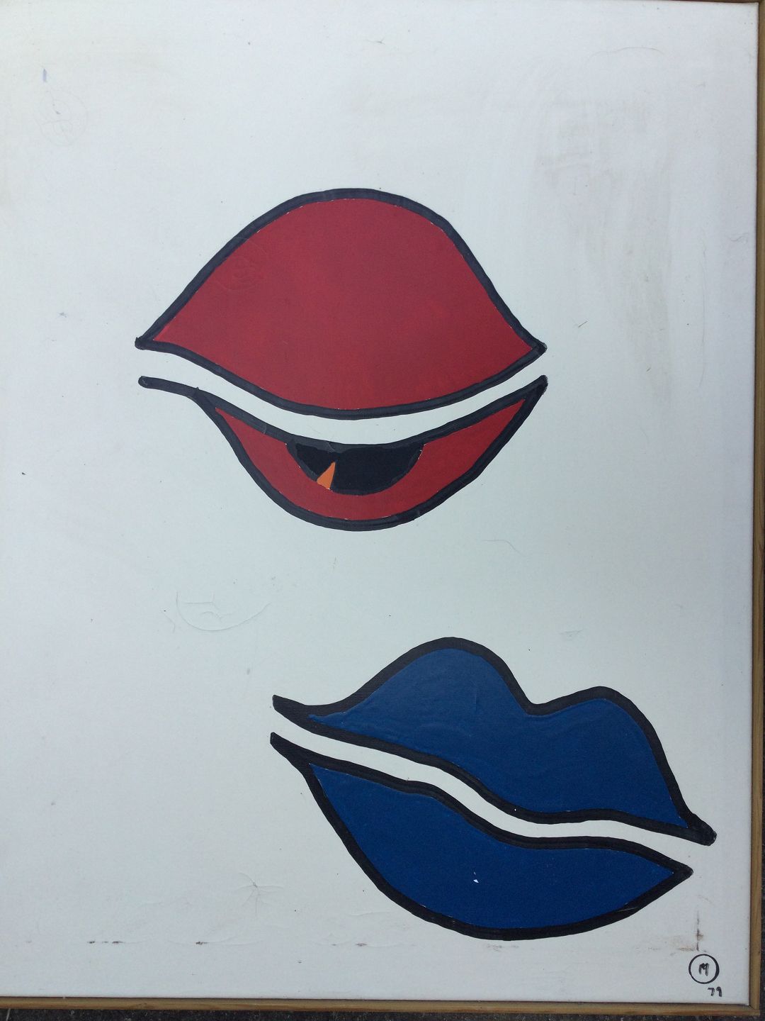 Maleri af Flemming Moe - Komposition med læber 1979.