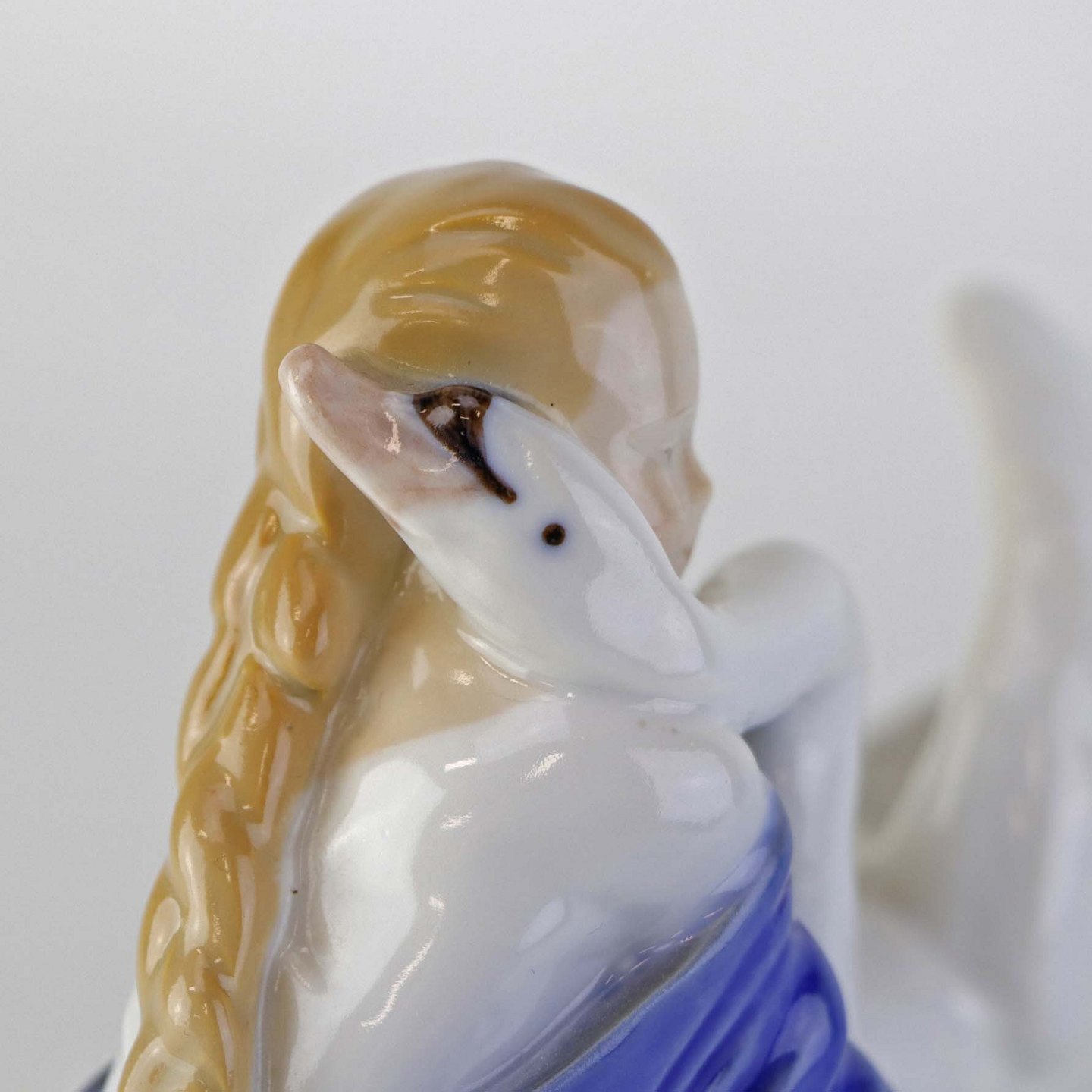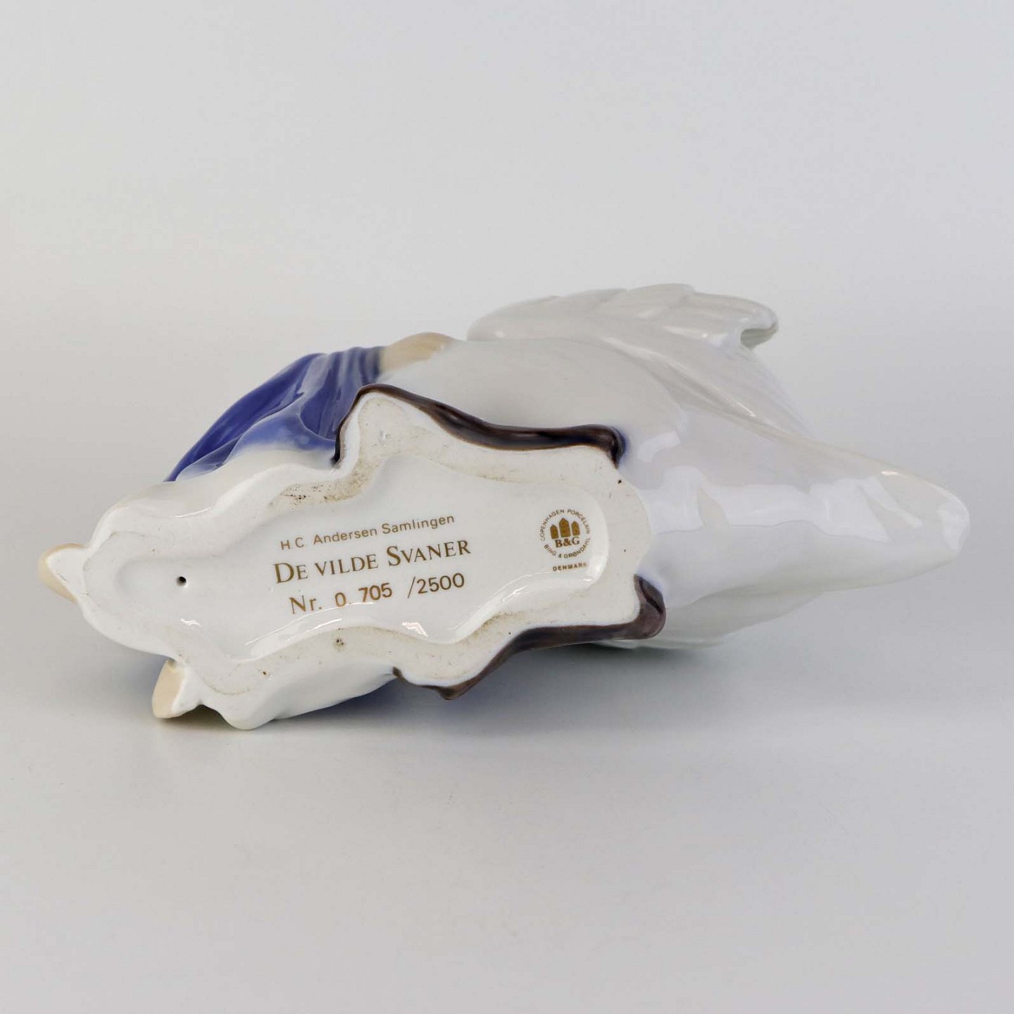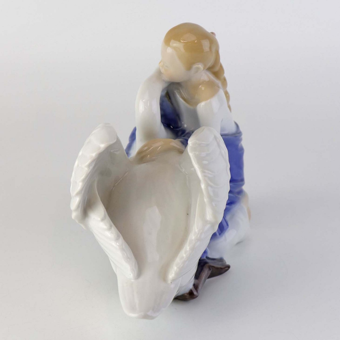 Figur i porcelæn med motiv af pige med svane fra eventyret De vilde svaner tilhørende H.C. Andersen samlingen. Nr. 705/2500
