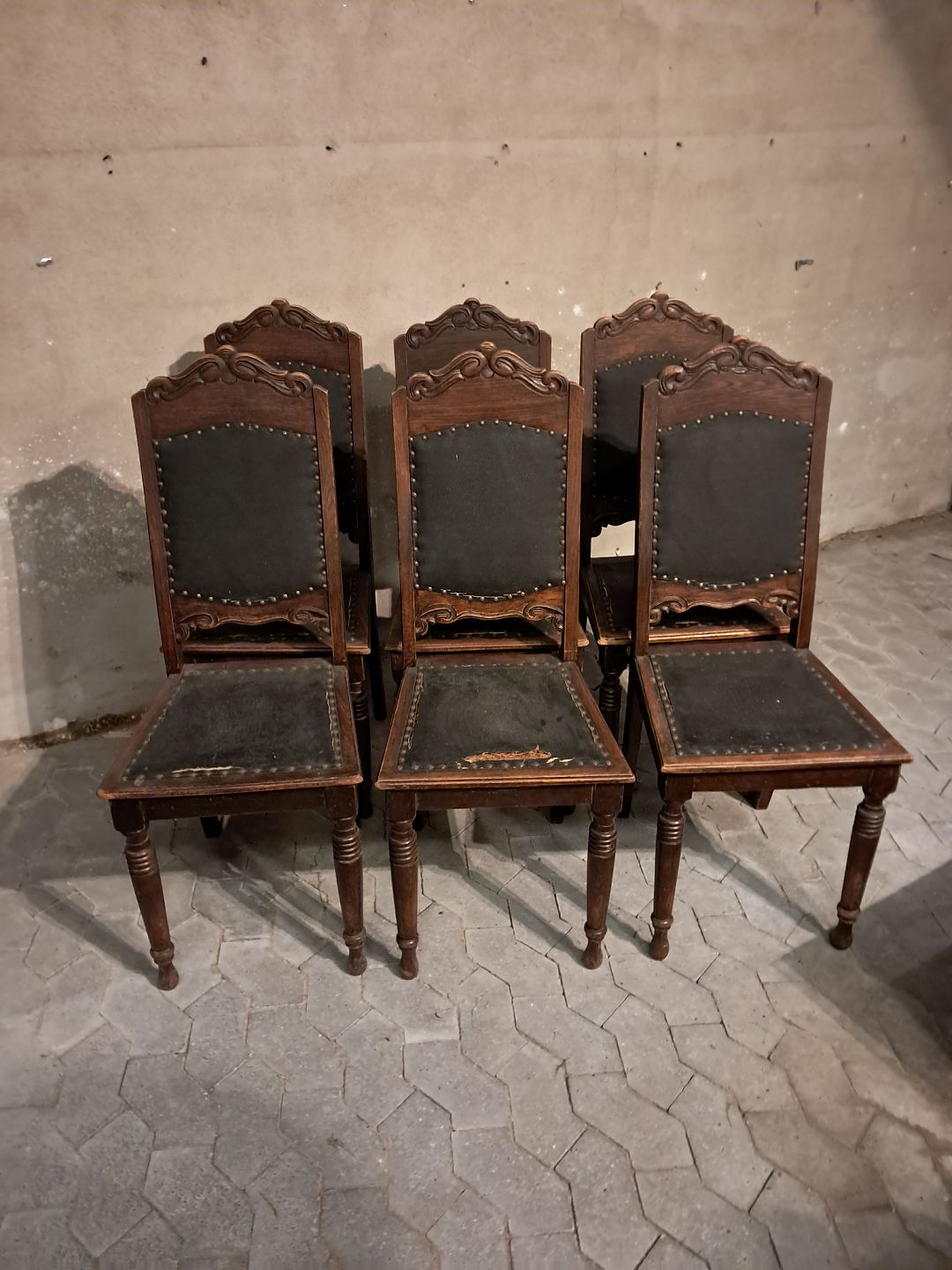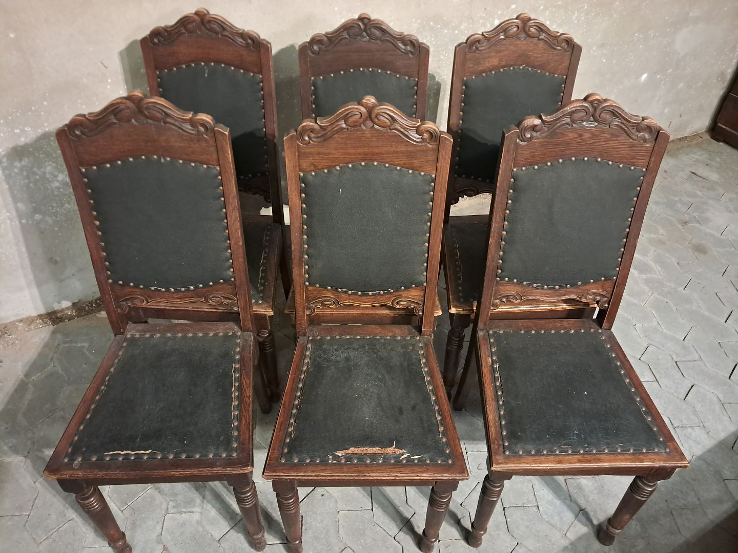 6 Stole i massivt egetræ, fra 1910erne.