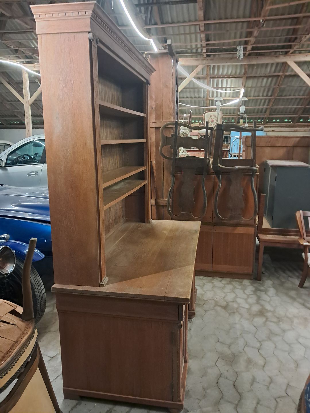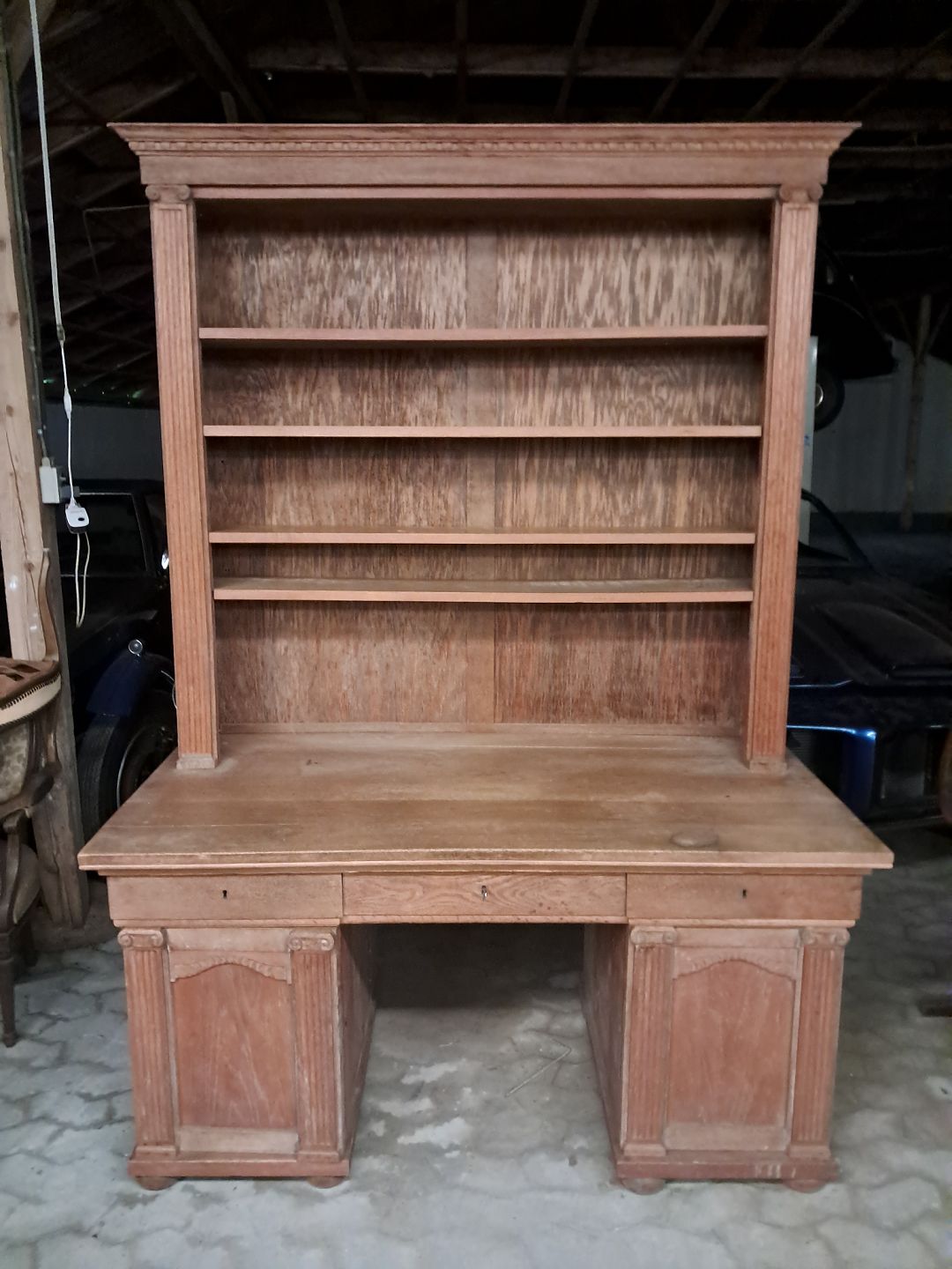 Text available in Danish: Skrivebord i fineret og massivt egetræ, fra 1920erne.