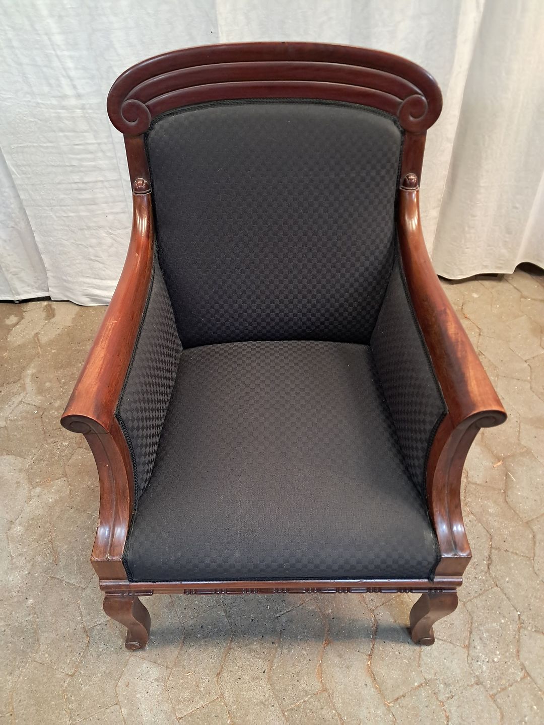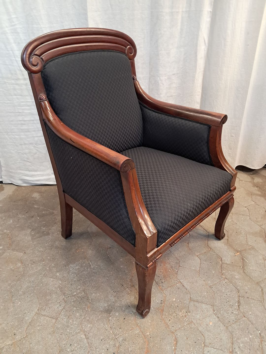 Lænestol i massivt mahogni, fra 1900erne.