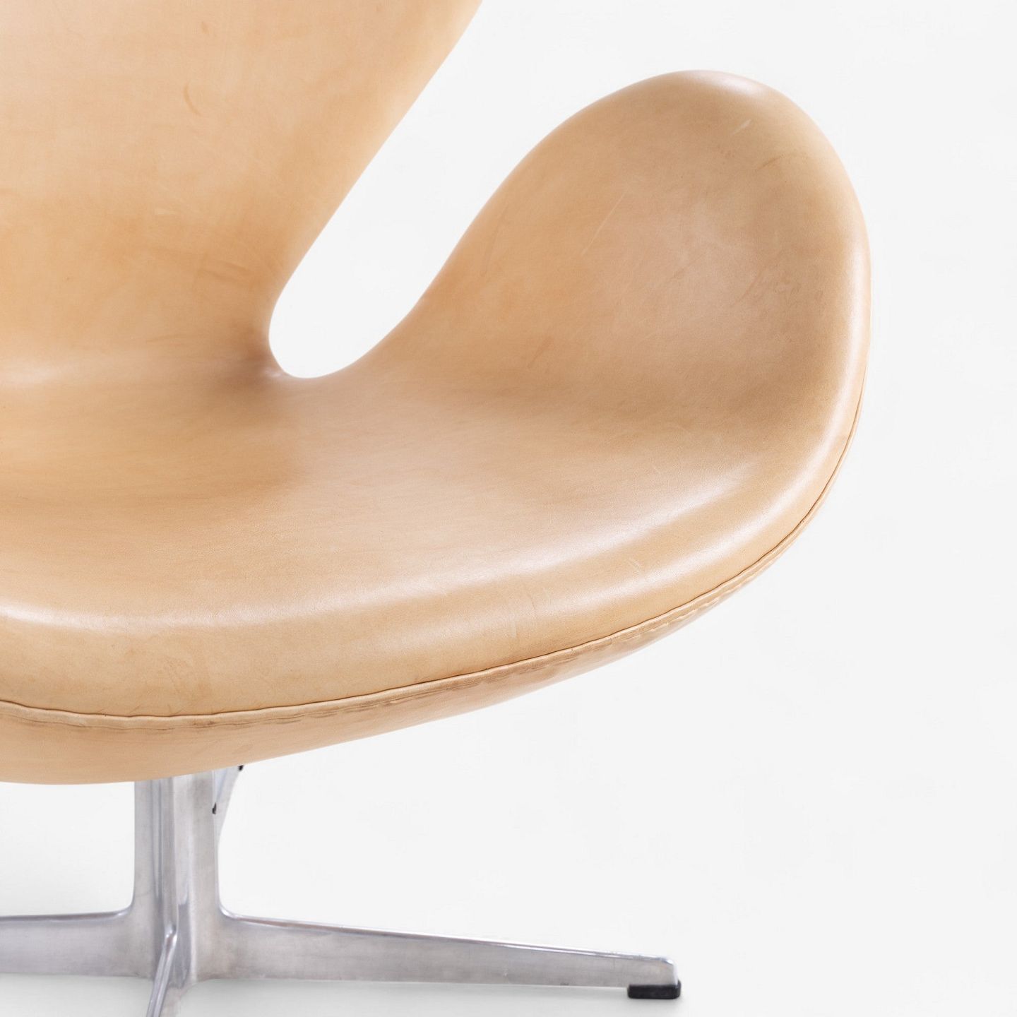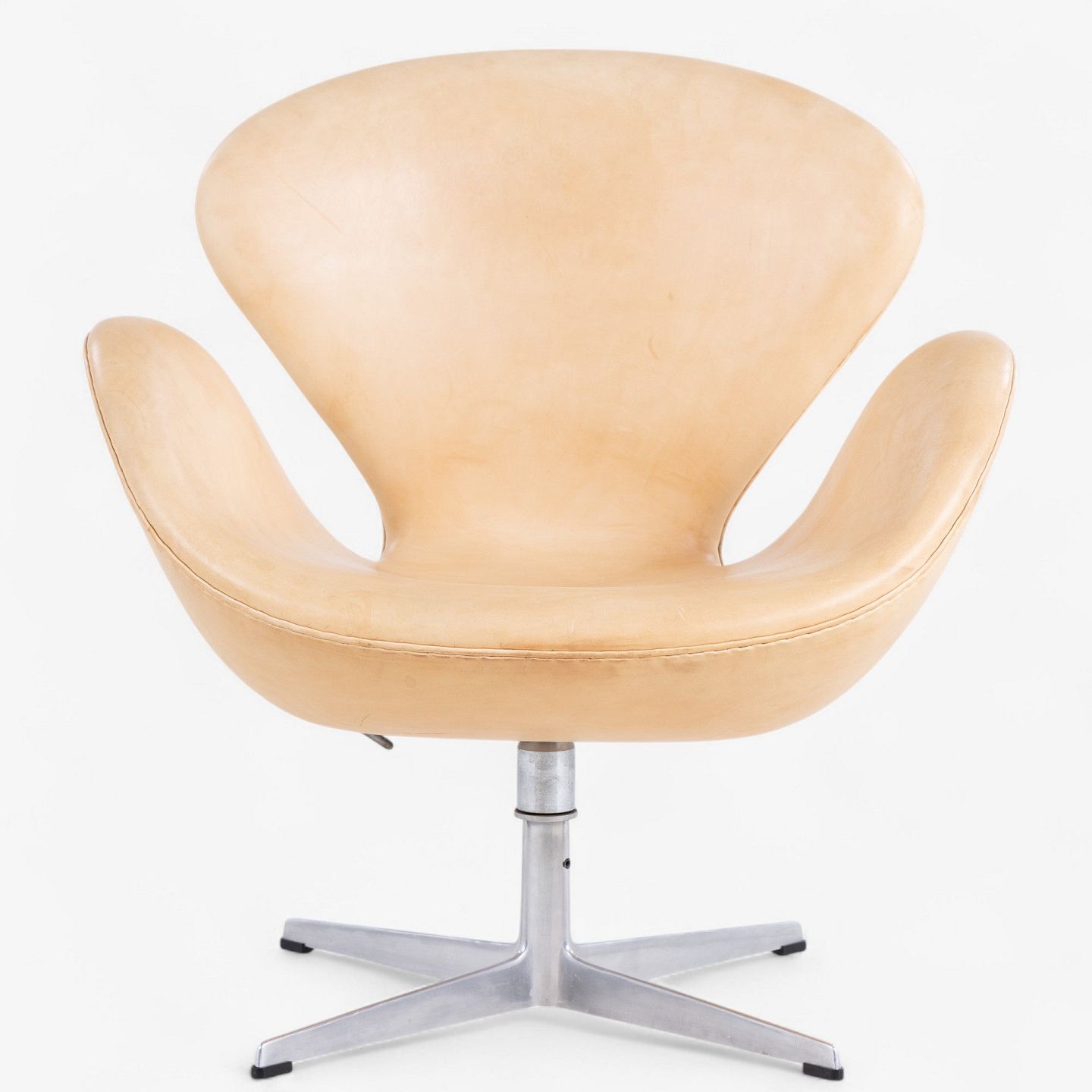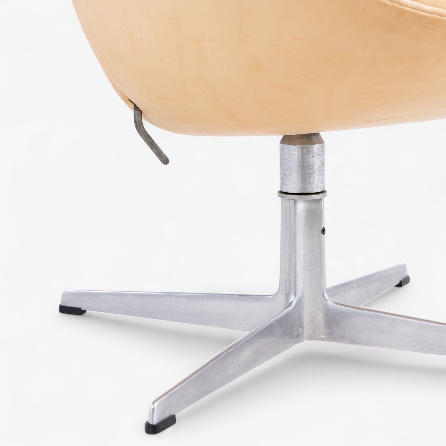 AJ 3320 - 'Svanen' i patineret lyst naturlæder på fod af aluminium m. vippefunktion.