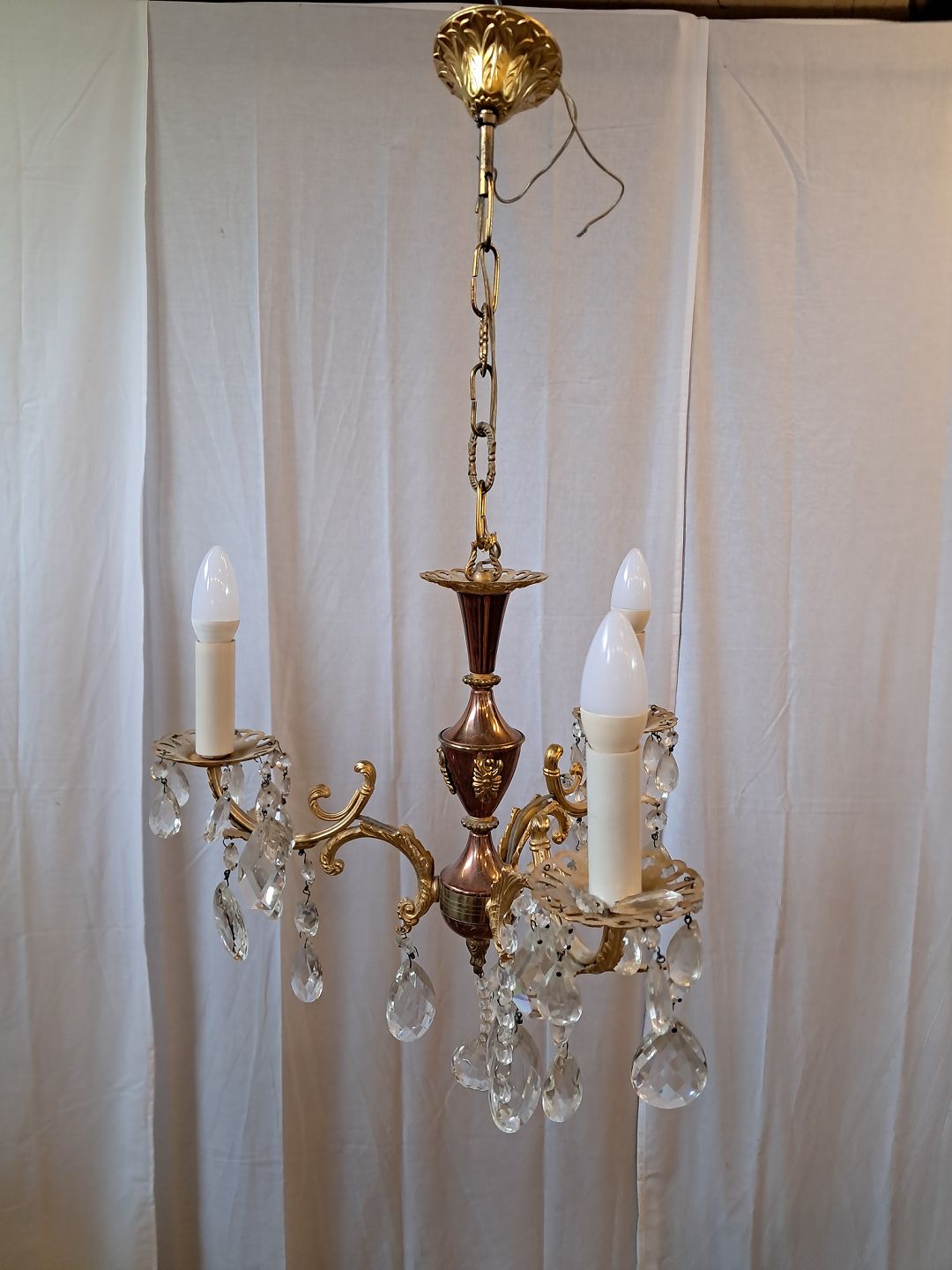 Lille prismekrone i metal og glas, fra 1980erne.