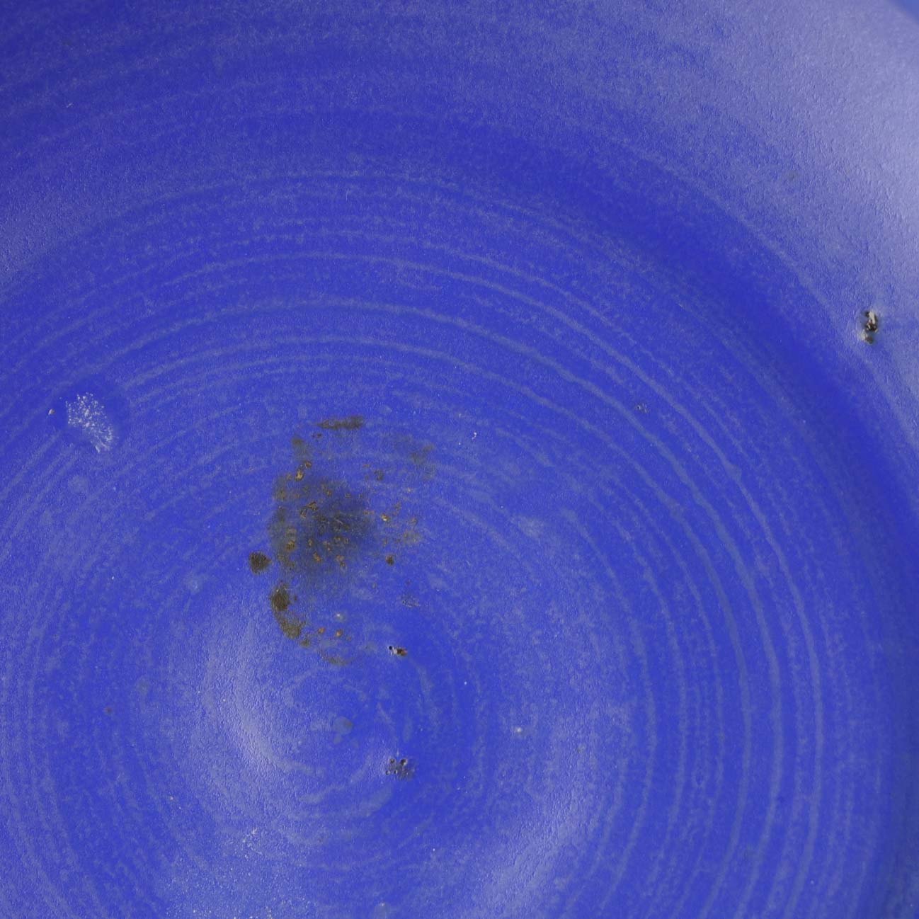 Rund krukke keramik med låg. Krukken er dekoreret med blå glasur.