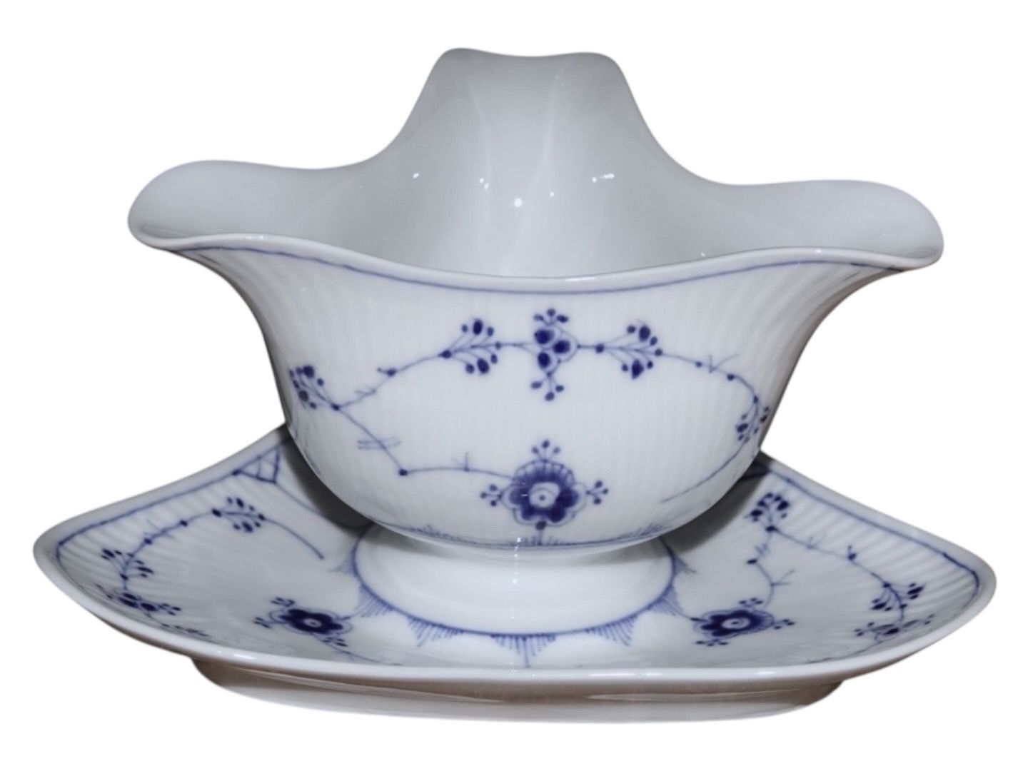 Royal Copenhagen Musselmalet Riflet, sovseskål på trekantet fod.