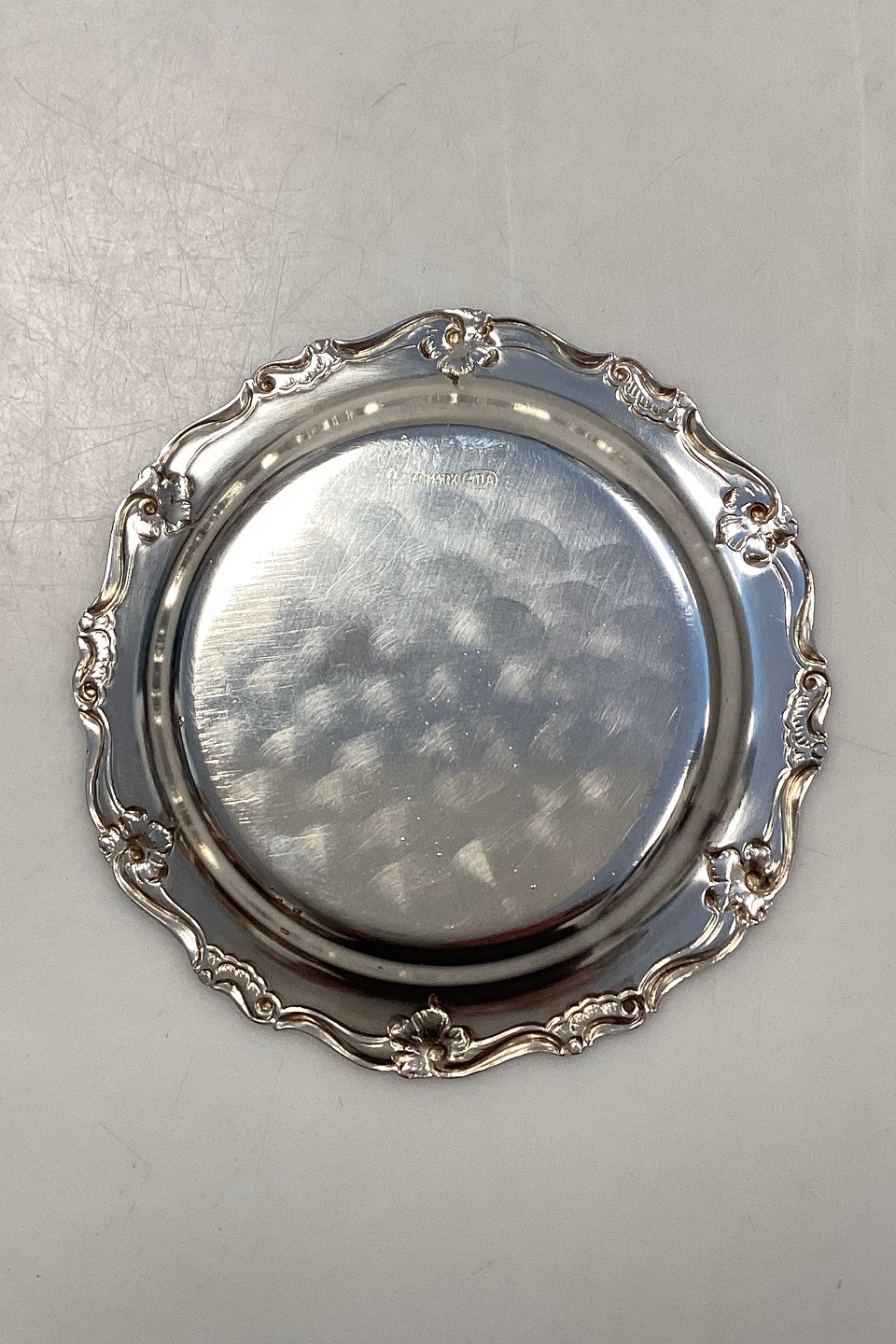 Set of 6 Danish ATLA Silver Plated Coaster. Edge decorated with flowers. Measures 10.5 cm / 4.13 inches