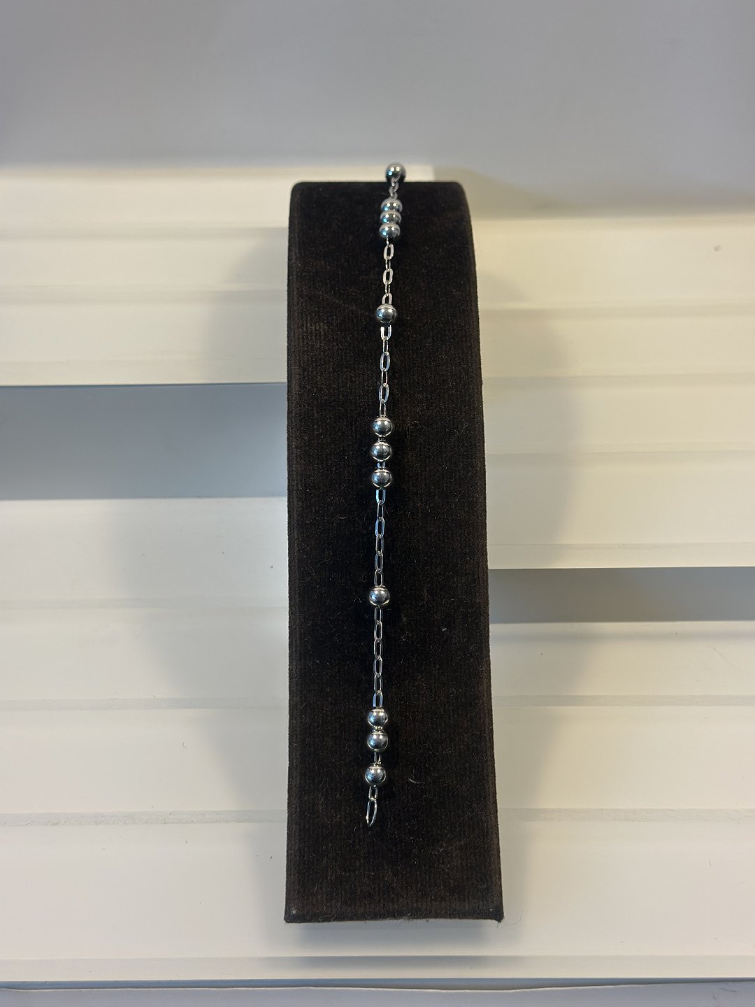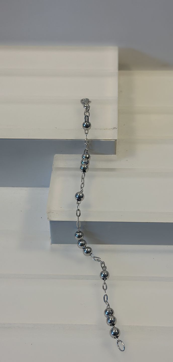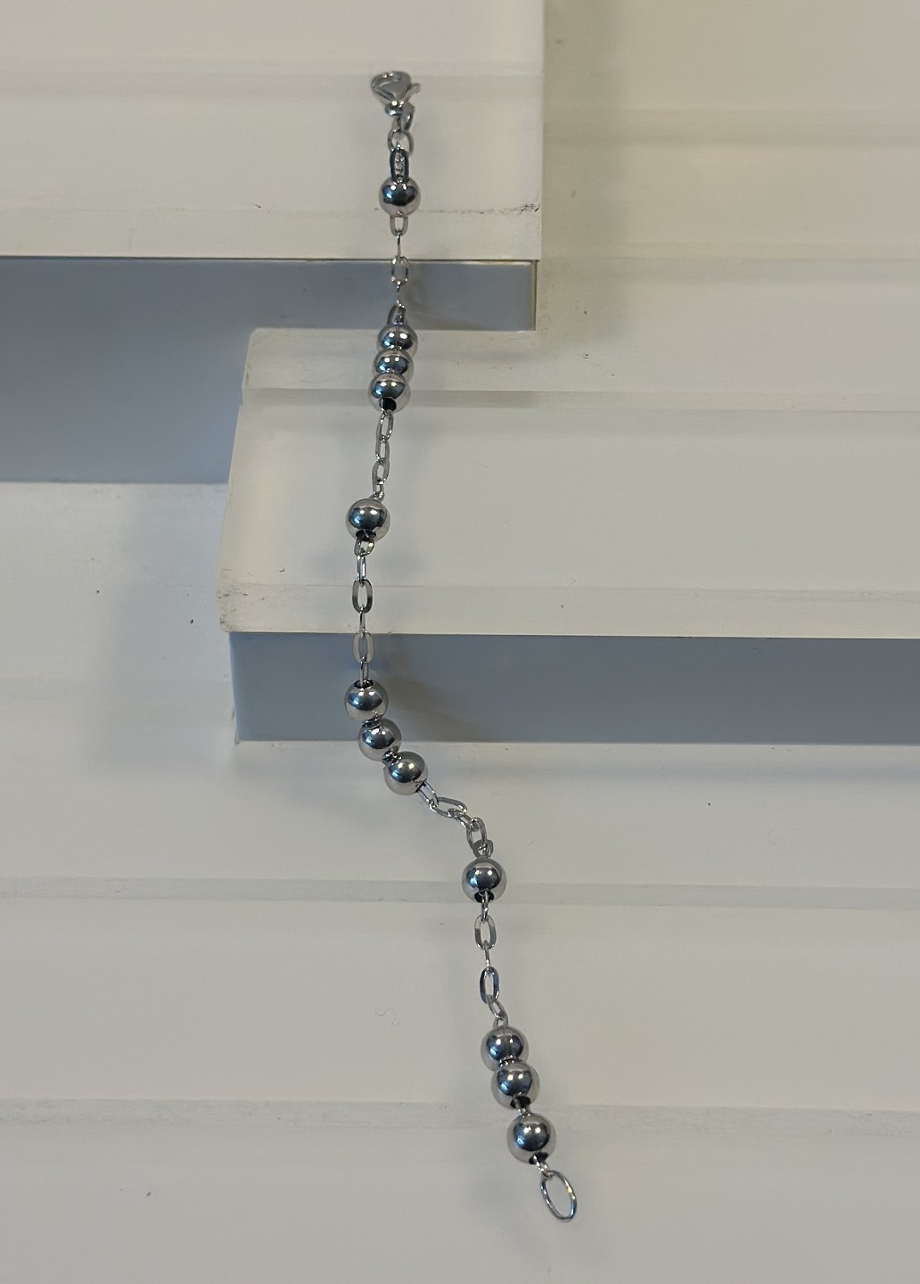 Længde 18 cm , armbånd med sølv kugler hele rund
