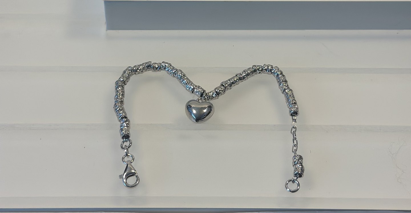 Sterling silver, women's bracelet Length 18 cm bracelet has silver heart in the middle and silver balls all around. Nice and perfect condition