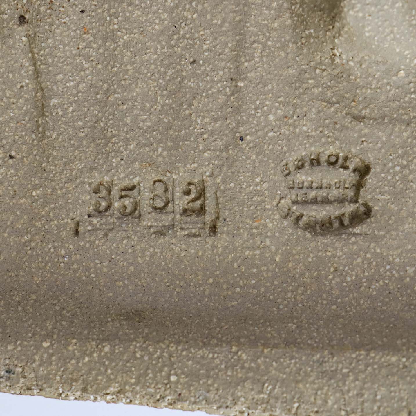 Relief i glaseret stentøj med motiv et par på karret tur med kusk og heste. Nr. 3582